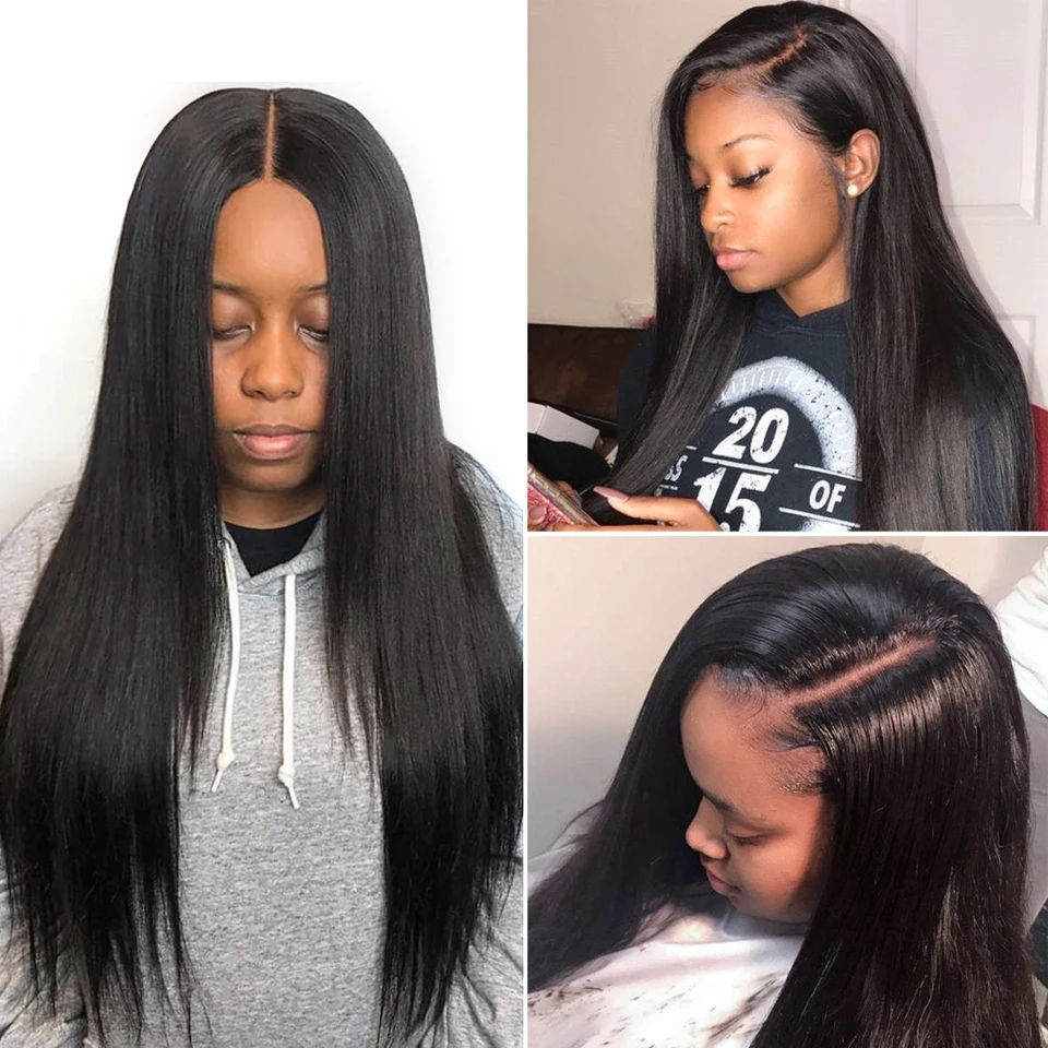 Парик Из прямых человеческих волос 13x4x1, Т-образный парик с фронт...