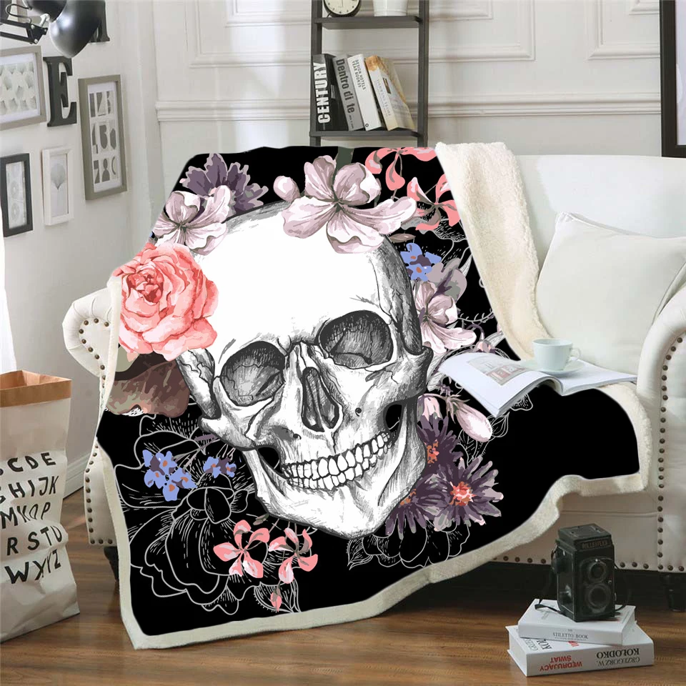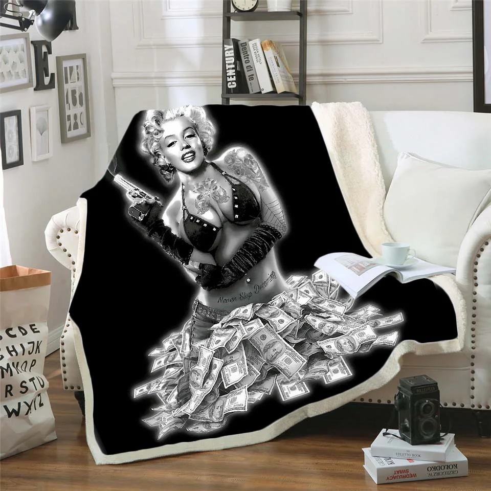 Новое красивое плюшевое одеяло с 3d-черепом Мэрилин Монро, одеяло из шерпы с мультяшным рисунком, готическое постельное белье, черное одеяло для кровати для мальчиков, одеяла