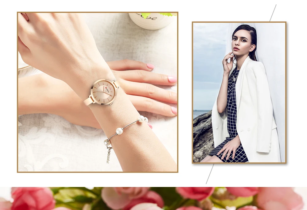 Часы женские кварцевые под платье под розовое золото, водонепроница...