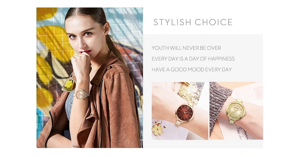 CURREN Модные Золотые женские часы из нержавеющей стали ультра тонк...
