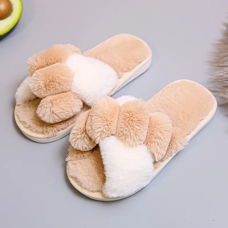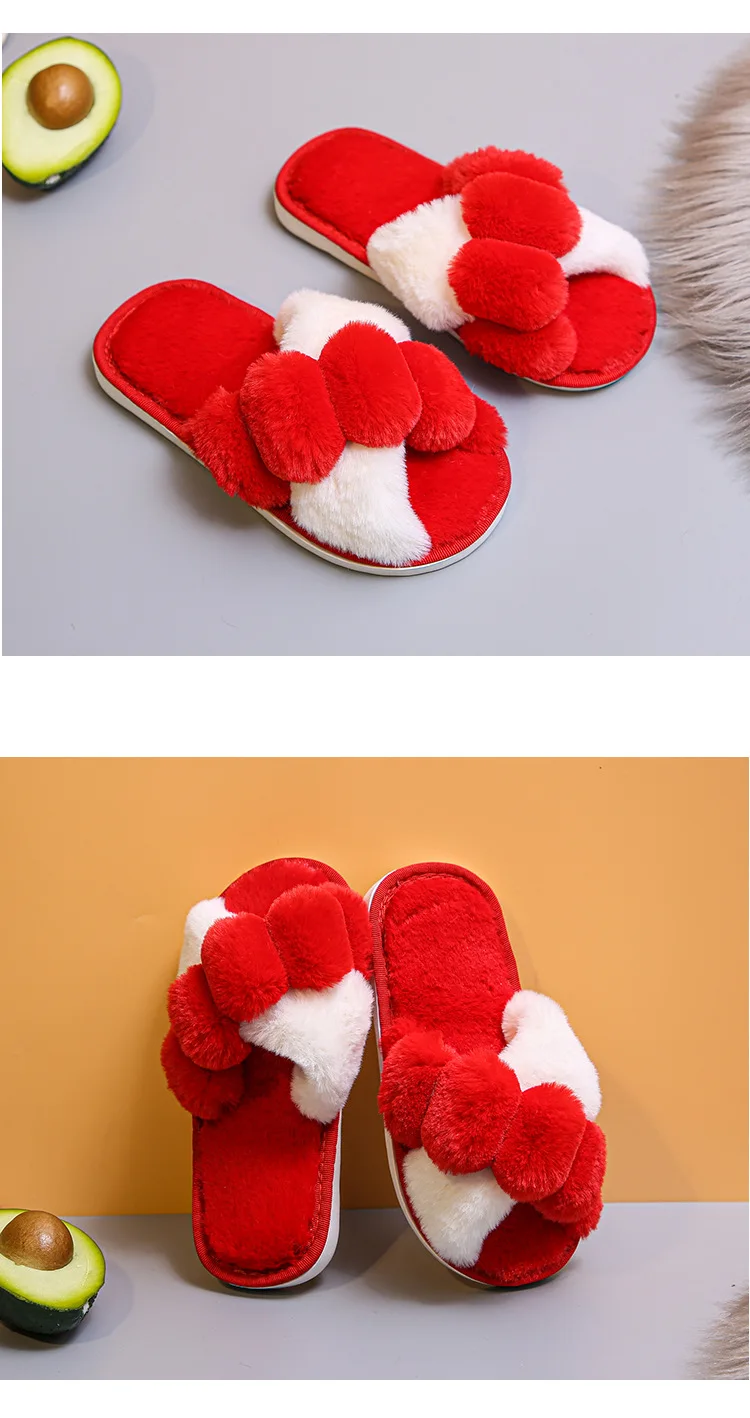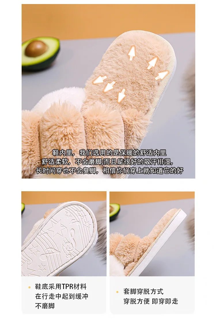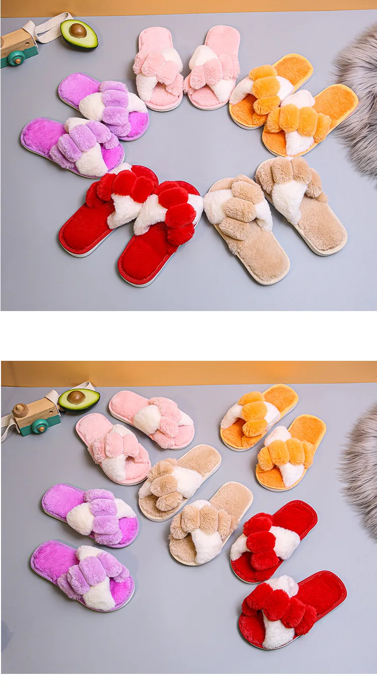Зимние тапочки для девочек, женская обувь, плюшевые туфли с открытым носком, хлопковые тапочки для маленьких девочек, Симпатичные пушистые тапочки, Нескользящие, теплые женские Тапочки
