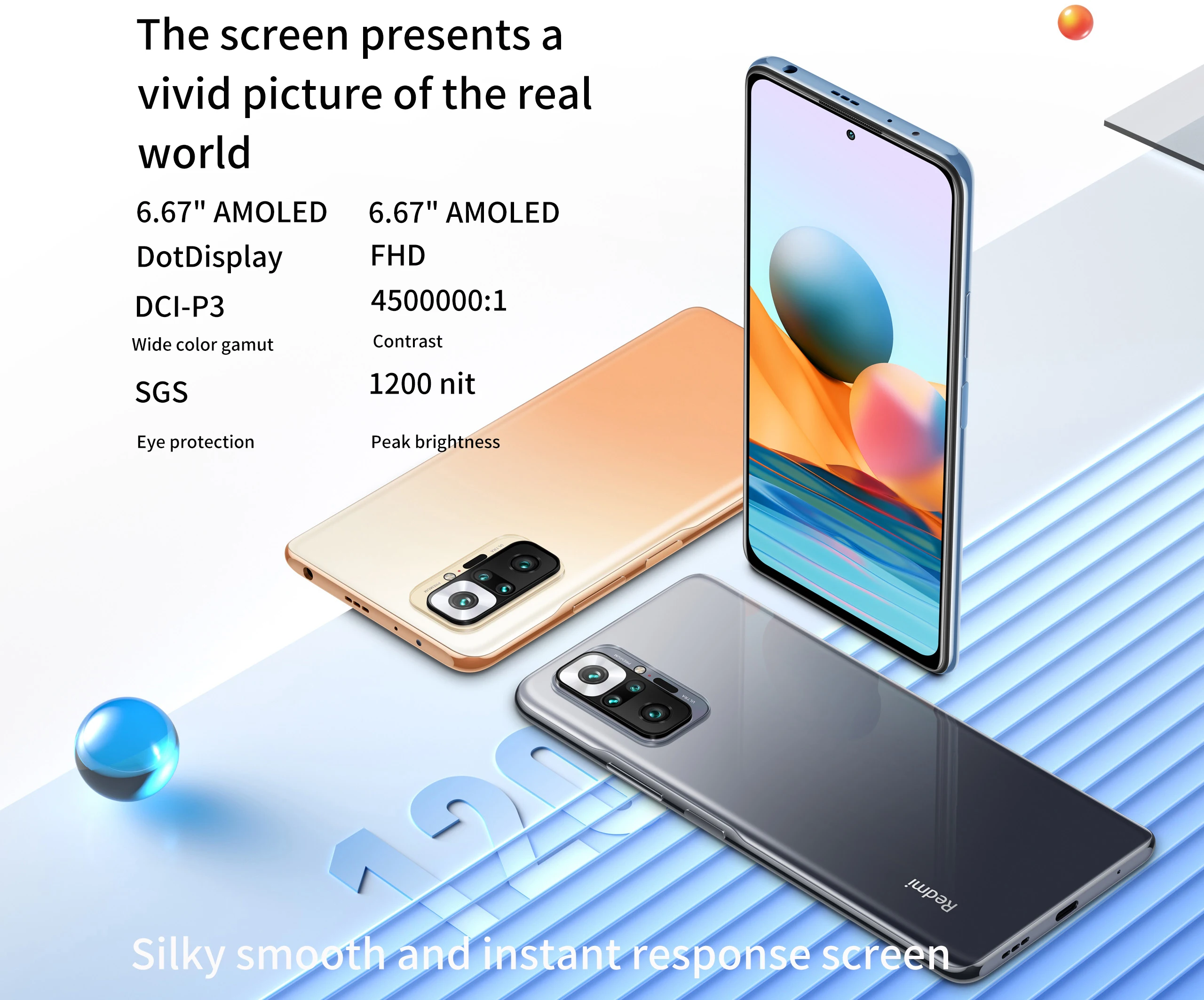 Global ROM Смартфон Xiaomi Redmi Note 10 Pro Размерность 1100 Octa Core 120 Гц Экран 64MP Камера 67W Быстрая зарядка 5G Мобильный телефон