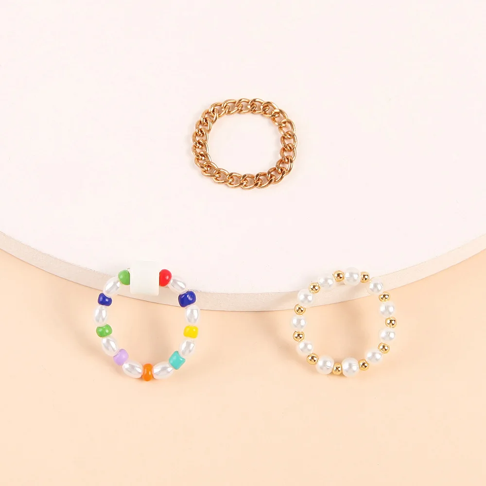 Модные полимерные геометрические кольца для женщин, классические разноцветные цилиндрические бусины, кольца из трех частей, ювелирные изделия для девочек