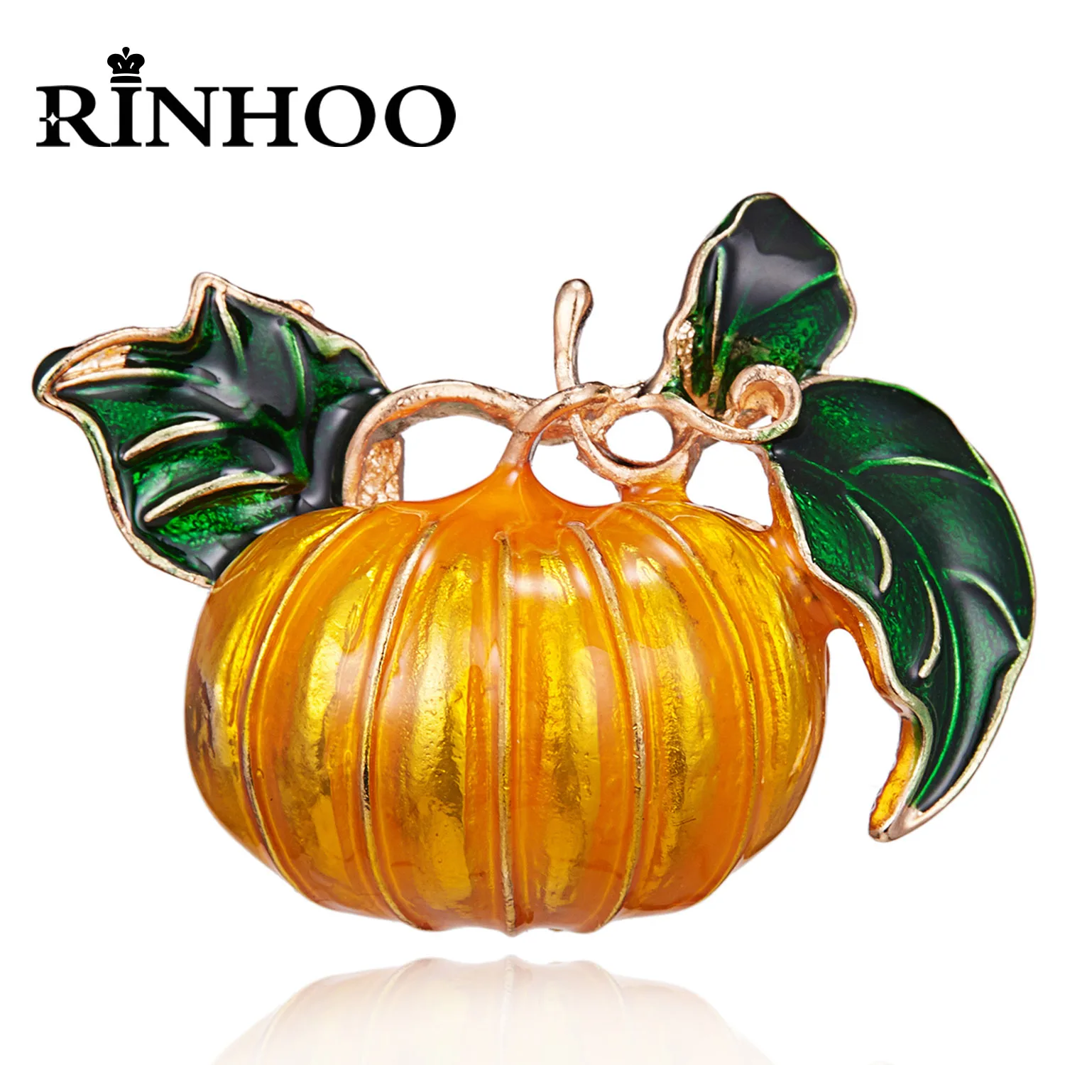 Rinhoo Хэллоуин броши в виде тыквы для женщин растения желтая рубашка с рисунком тыквы одежда сумка эмаль булавки зеленый лист значок костюм ювелирные изделия