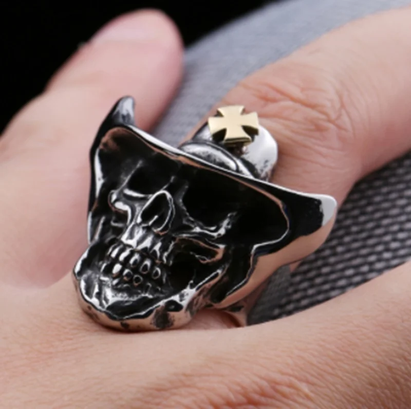 Винтажное кольцо с крестом-черепом для мужчин, модное мужское кольц...