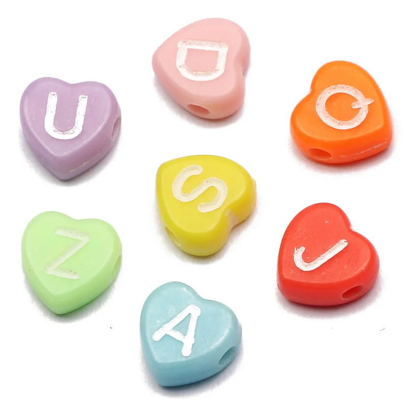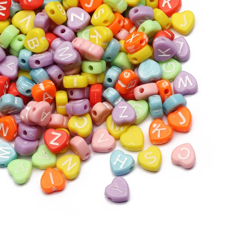 Акриловые бусины с смешанными буквами, бусины в форме сердца, бусины с алфавитом россыпью, аксессуары для самостоятельного изготовления браслетов