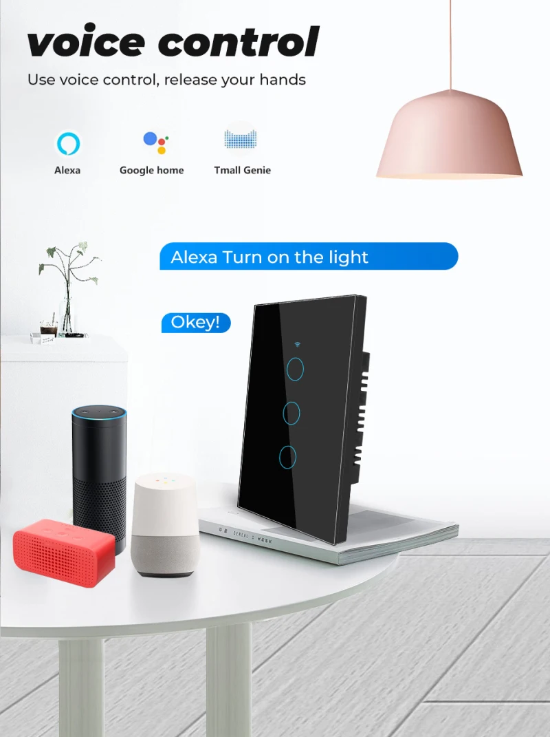 【Поддержка голосового динамика управление переключатель совместим с Alexa и Google Home Assistant, что позволяет использовать Голосовое управление smart switch для включения/выключения.
