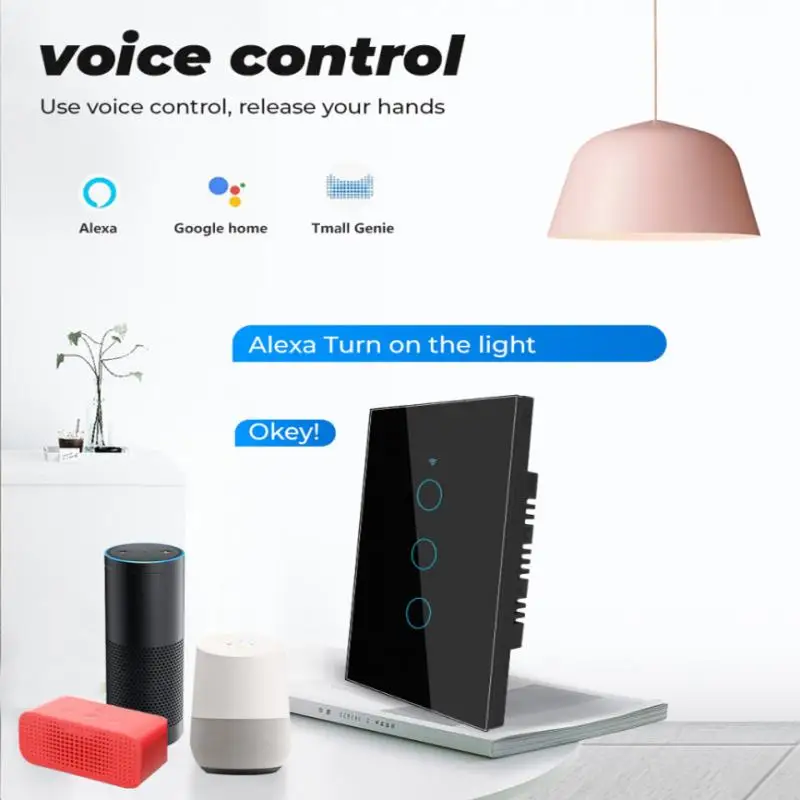 【Четыре метода управления 】 управление приложением + Голосовое управление + 433 МГц RF беспроводной переключатель + переключатель сенсорного управления