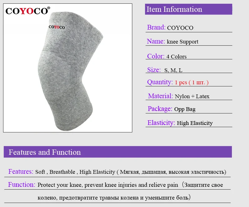 Спортивные наколенники COYOCO 1 шт., фирменные наколенники для предотвращения артрита, высокая эластичность, защита для сохранения тепла, серый цвет