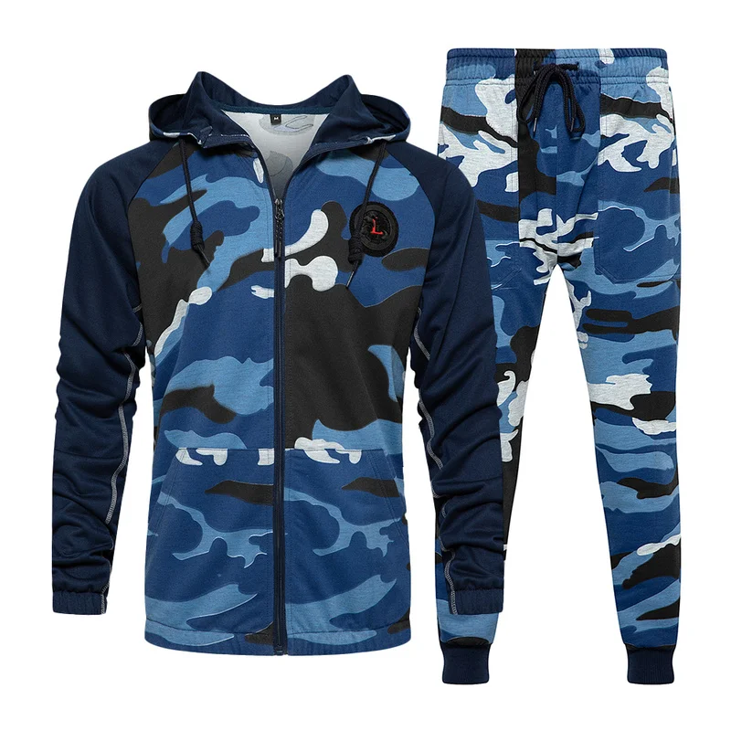 Мужской спортивный костюм, камуфляжная кофта + штаны для отслеживания, спортивная одежда для спортзала, комплект из худи и штанов, Осень-зима 2021