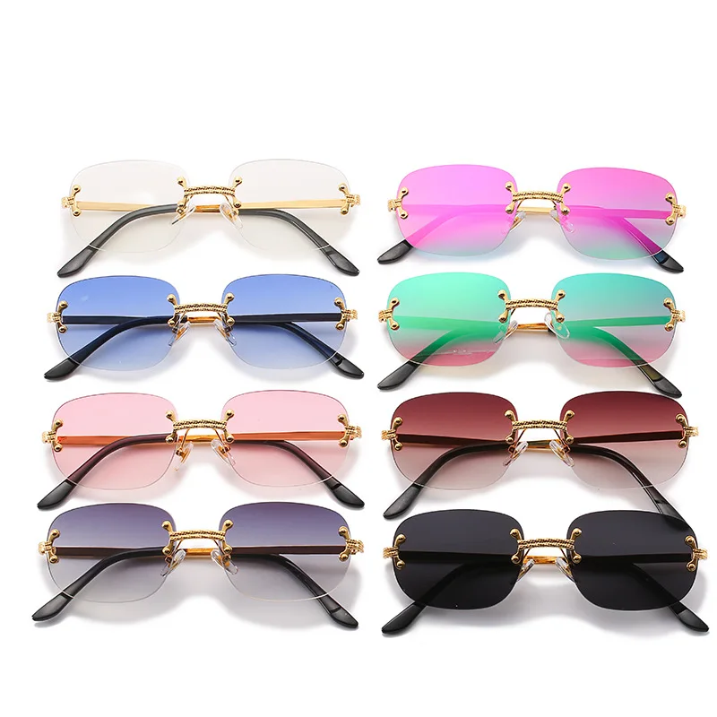 2021 прямоугольные голубые солнцезащитные очки без оправы в стиле ретро мужские высококачественные квадратные металлические солнцезащитные очки женские зеркальные морские солнцезащитные очки