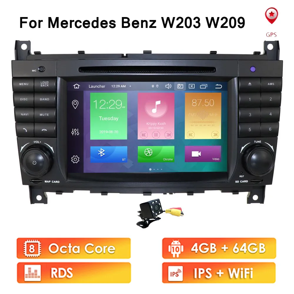Автомобильная Мультимедийная магнитола C-klase W203 Clc Clk W209 C180 C200 C220 CLK200 CLK240 Android 10 с GPS, Wi-Fi, 4G для Mercedes Benz
