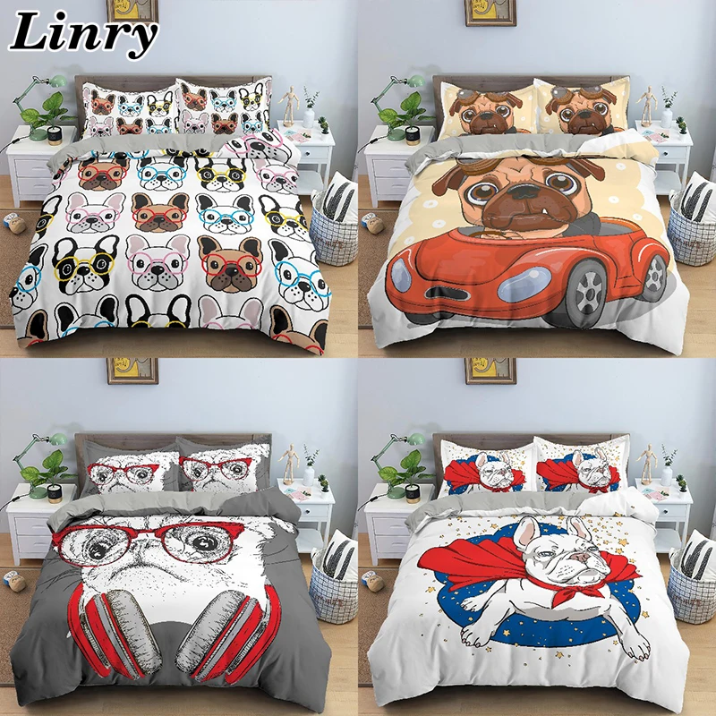 Комплект постельного белья из микрофибры, с рисунком милого мопса, ...