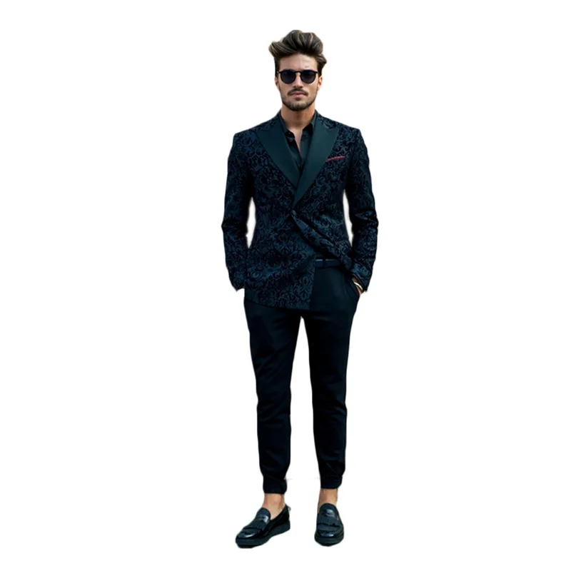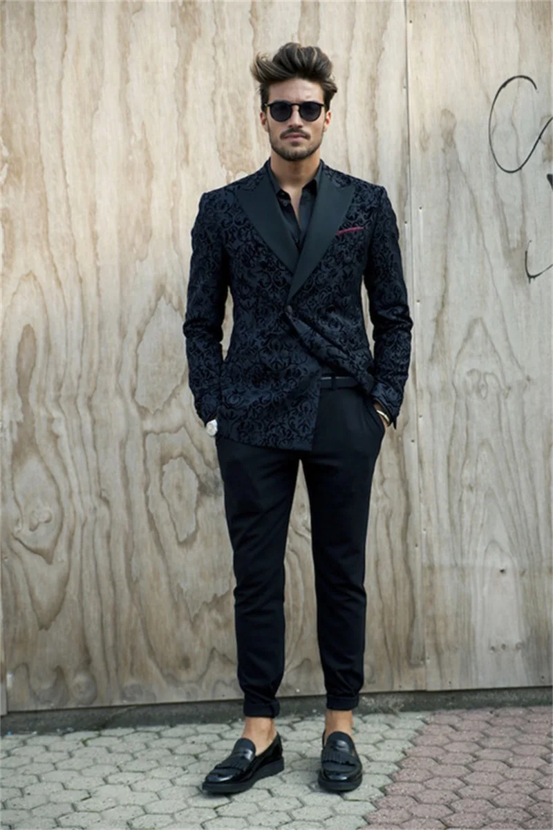 Роскошные мужские костюмы с принтом 2 шт. Черный Модный свадебный костюм пиджак с заостренным лацканом костюм на заказ пальто + брюки