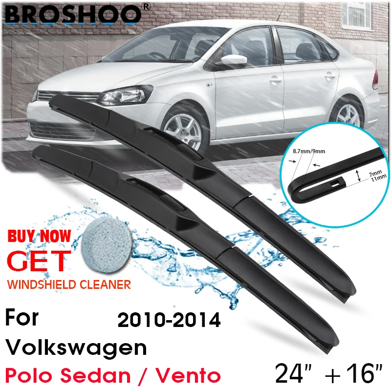 Щетка стеклоочистителя для автомобиля, лобовое стекло, лобовое стекло, стеклоочистители, авто, u-образный крюк, аксессуары для Volkswagen Polo Sedan / Vento 24 "+ 16" 2010-2014