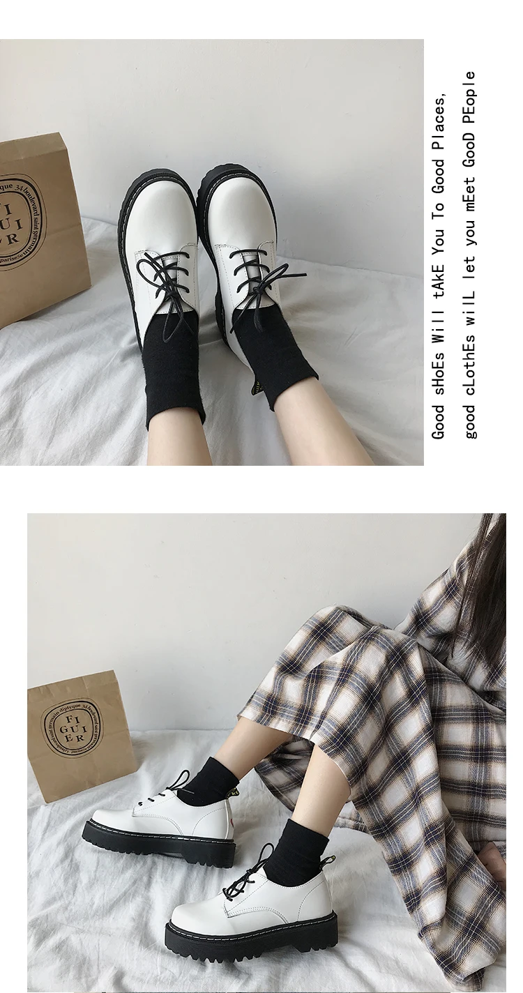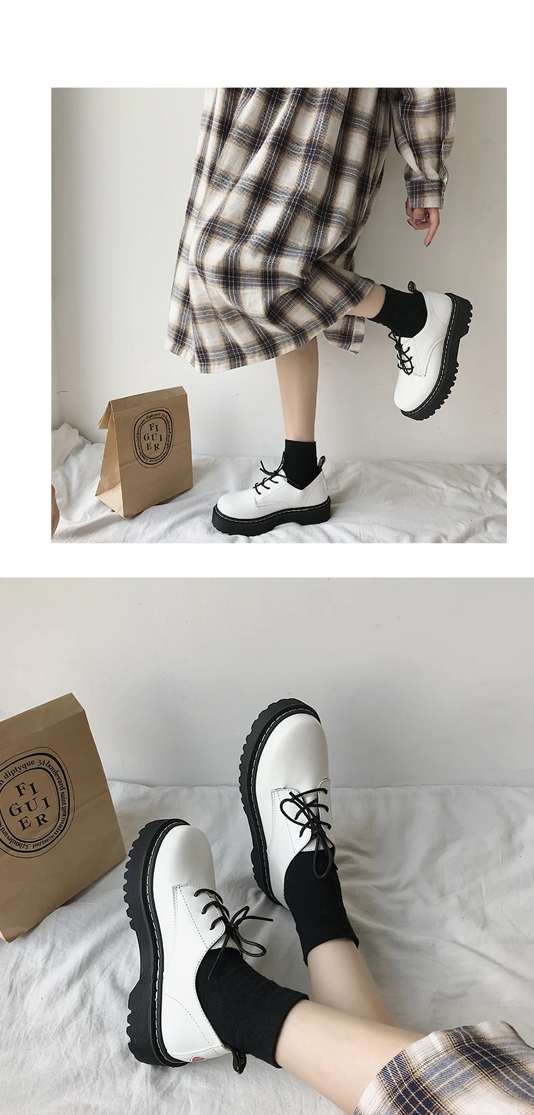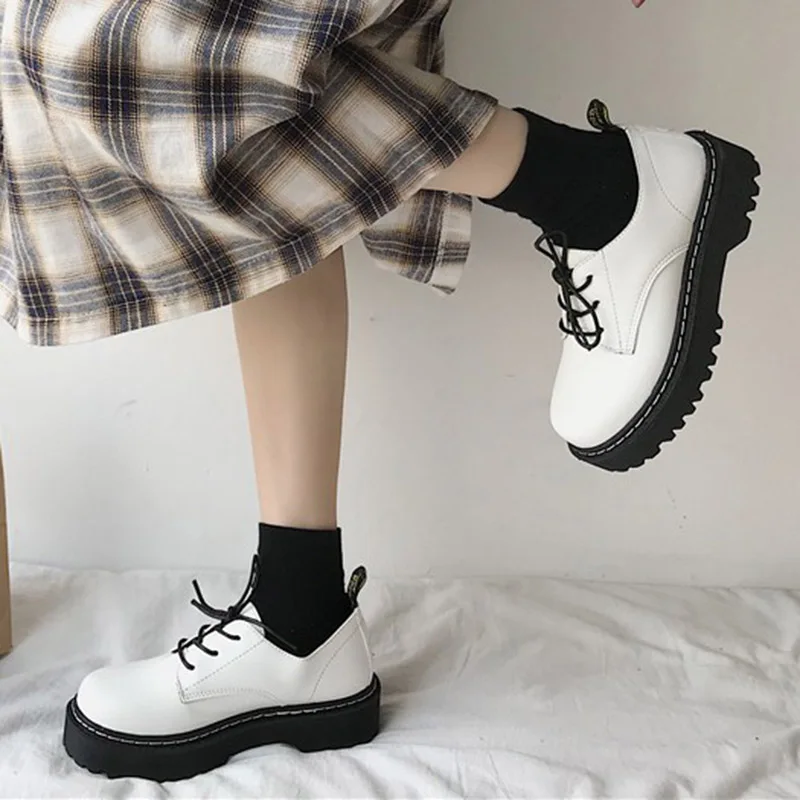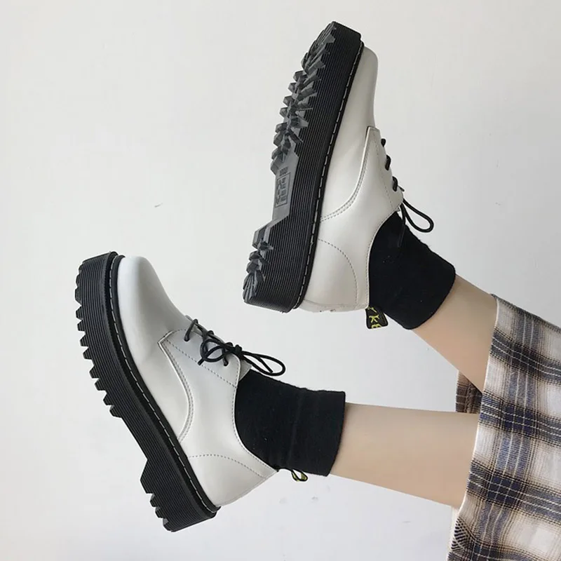 Женские туфли-оксфорды на плоской платформе, кожаные туфли на шнуровке, с круглым носком, на толстой подошве, цвет белыйчерный, 9376N