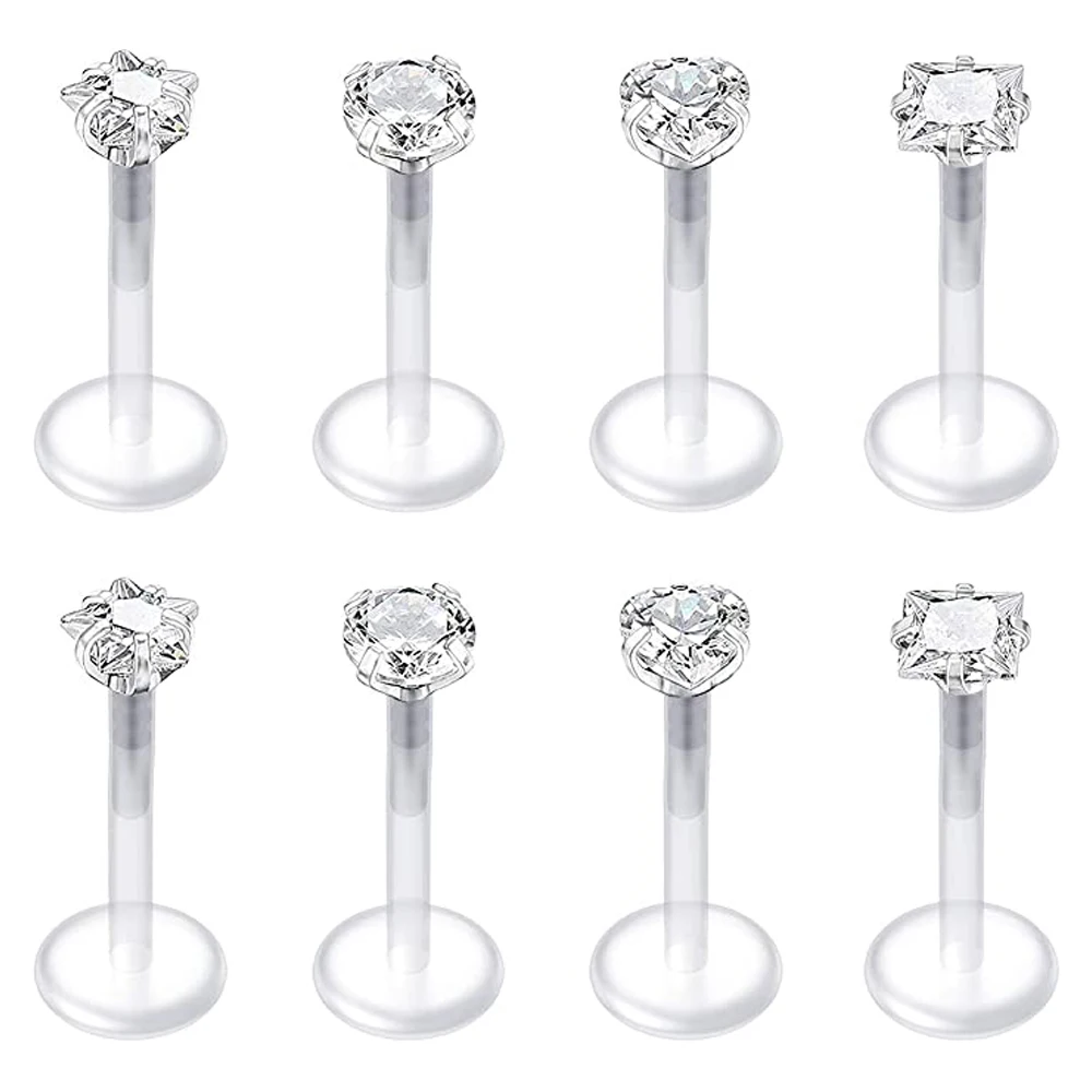 16 г прозрачные кольца для губ шпильки для хряща серьги на Козелок фиксатор для работы пластиковые фианиты губы пирсинг Монро ювелирные изделия 8 мм