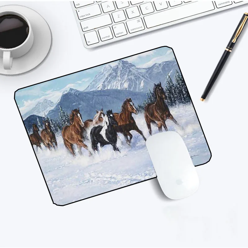 Yuzuoan Абстрактная живопись окрашенный ноутбук коврик для мыши высокая Лошадь узор 22x18 см маленький коврик для мыши HD животное мышь Противоскользящий коврик