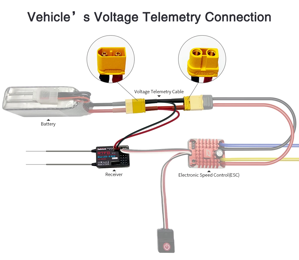 Функция телеметрии может дать вам информацию в реальном времени для справки, например, напряжение батареи транспортного средства, RSSI, напряжение аккумулятора передатчика и многое другое.Максимальное телеметрическое напряжение до 6 с. Для поддержки функции телеметрии RC6GS V2 нуждается в обновлении V6.0.0, транспортное средство должно быть оснащено приемником R7FG.