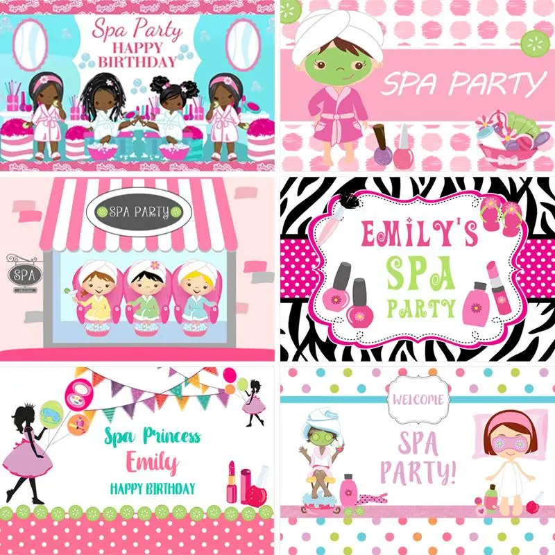Фотофоны для девочек со спа дня рождения для фотосъемки макияжа детей друзей Мультяшные фоны для фотостудии пользовательский плакат