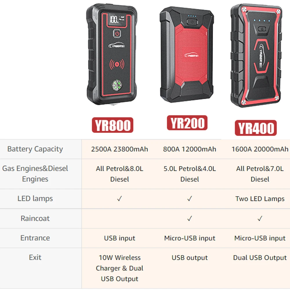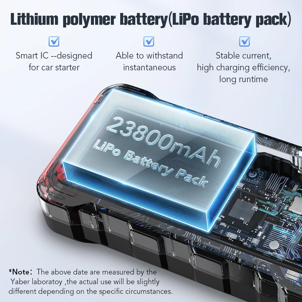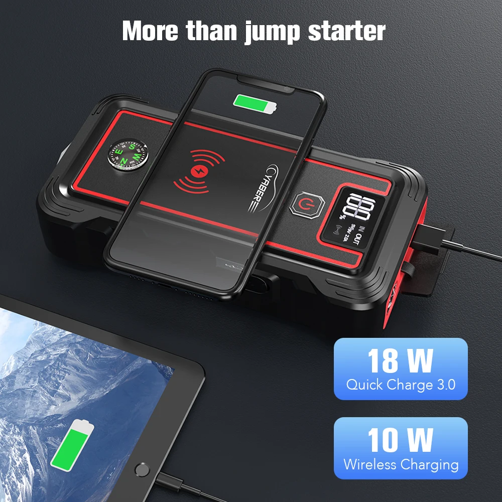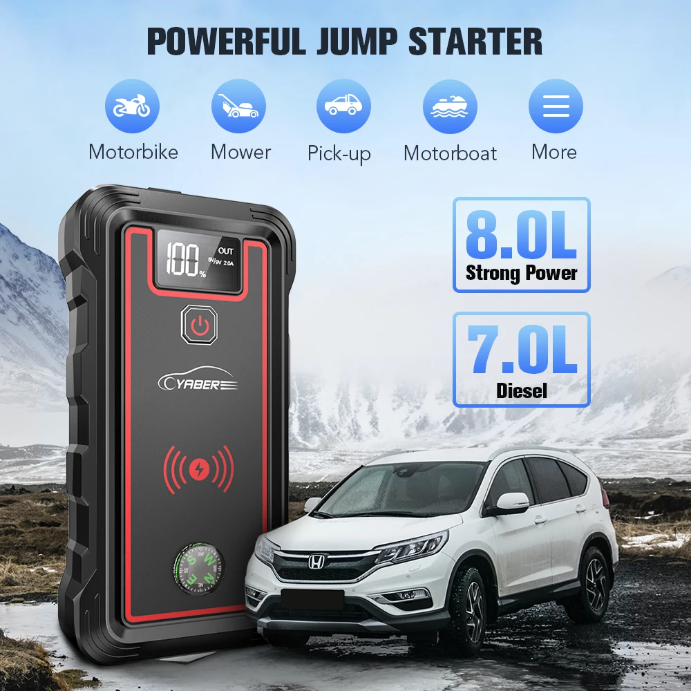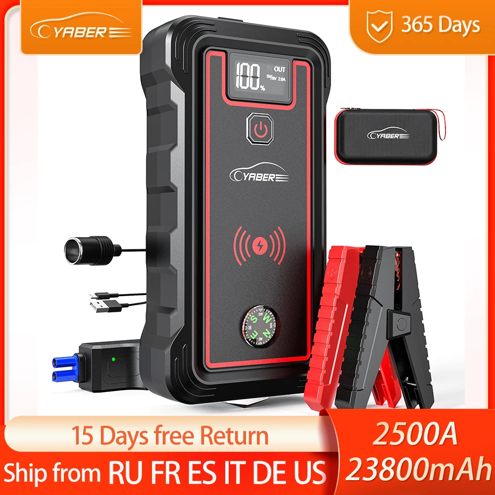 Зарядное устройство YABER для автомобильного аккумулятора 23800 А, пусковое устройство мАч, внешний аккумулятор с беспроводным зарядным устройством 10 Вт, портативный автомобильный бустер, пусковое устройство