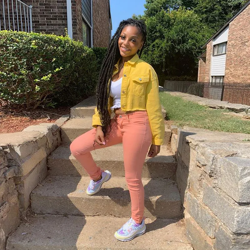Женская джинсовая куртка, Короткая желтая джинсовая куртка на весну...