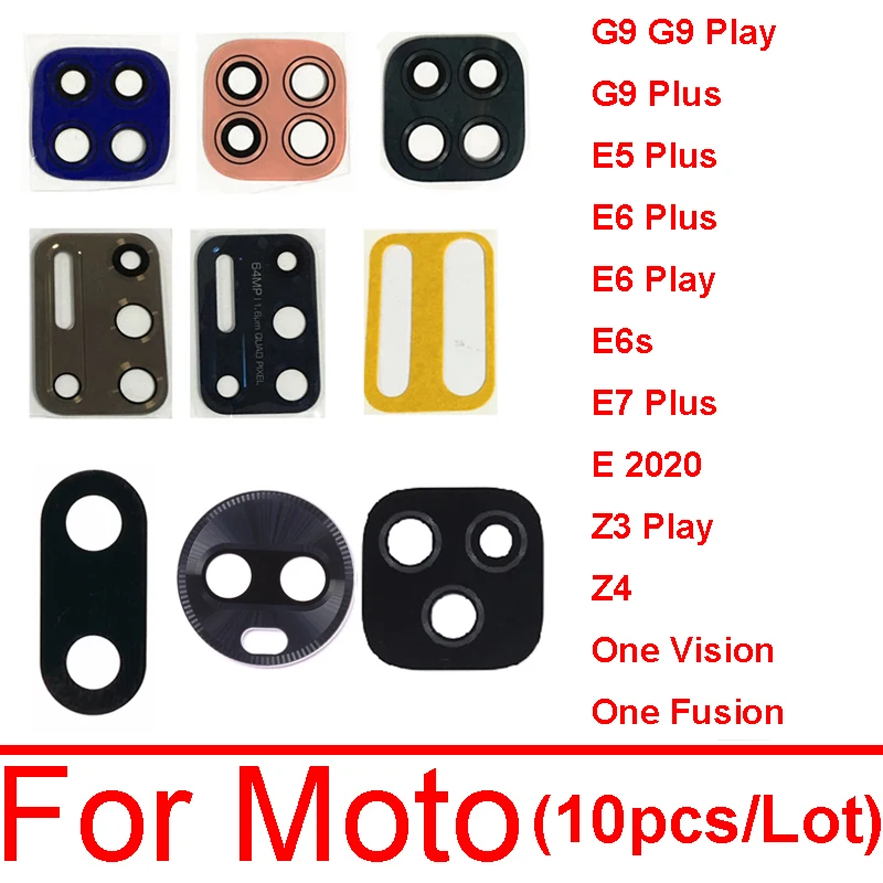 10 шт.лот, стеклянный объектив камеры, задняя камера, стеклянный объектив, наклейка для Moto E6 E7 Z3 Z4 G9 Play Plus One Vision Fusion E 2020 E6s