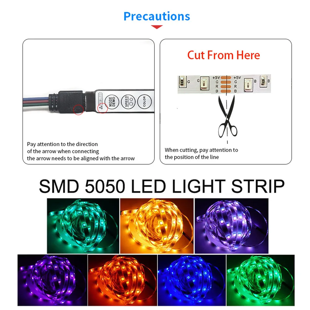Светодиодная RGB лента с управлением через приложение по Bluetooth, USB, 3 клавиши, гибкая лента для лампы 5050, 5 В, декоративная подсветка телевизора, светящаяся лента с регулируемой яркостью