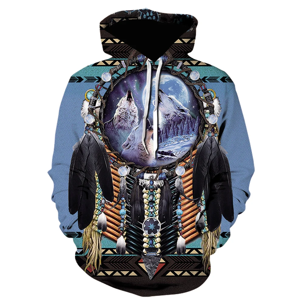 Толстовки мужские и женские с 3D-принтом волка, уличная одежда в ст...