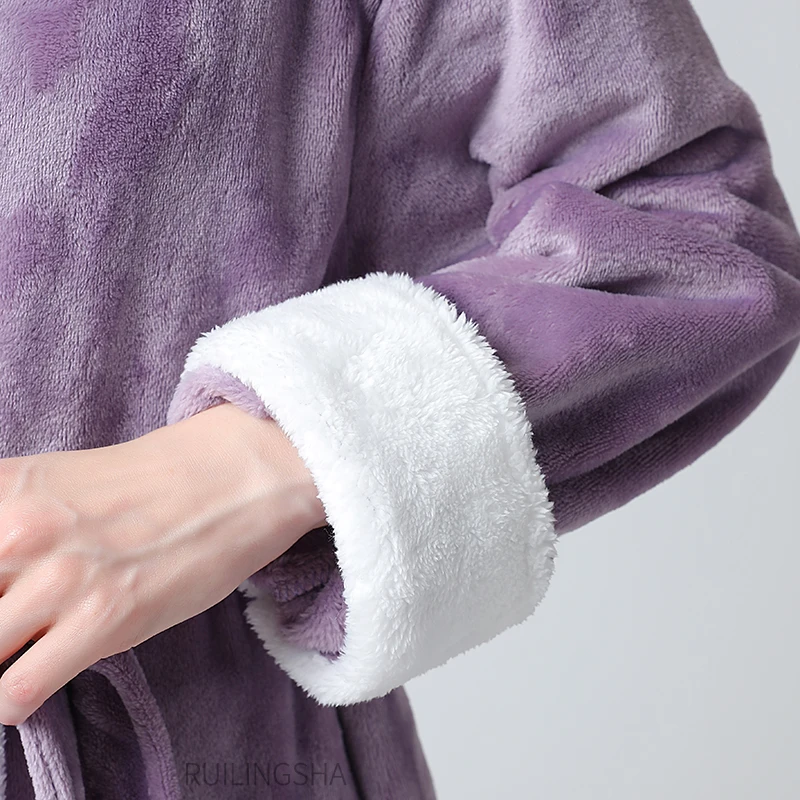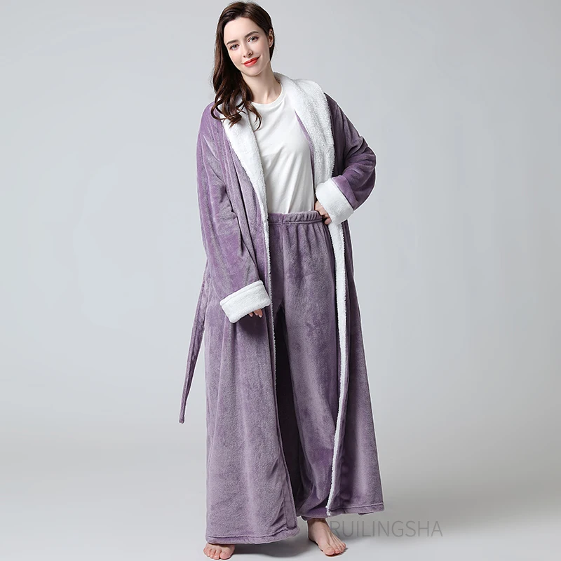 Женский зимний очень длинный теплый фланелевый пижамный комплект для сна, халат + брюки, флисовый пижамный комплект из двух предметов, Мужская одежда для сна, халат, комплекты
