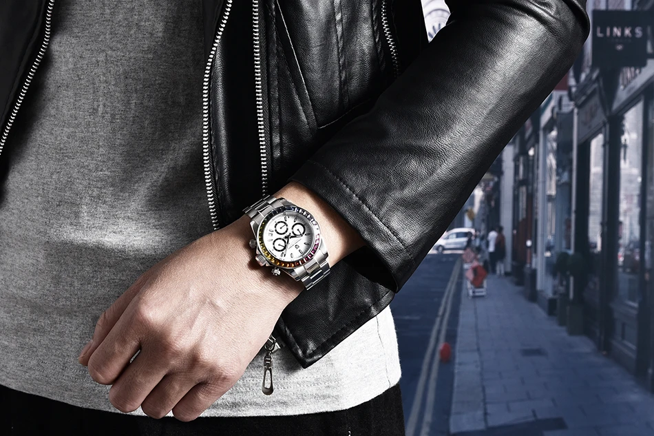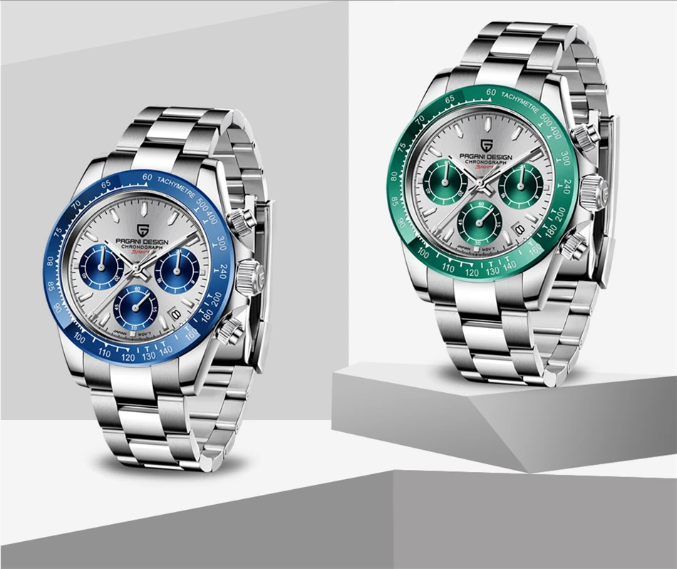 Часы наручные PAGANI Мужские кварцевые, брендовые многофункциональные Роскошные водонепроницаемые из нержавеющей стали, с хронографом, 40 мм