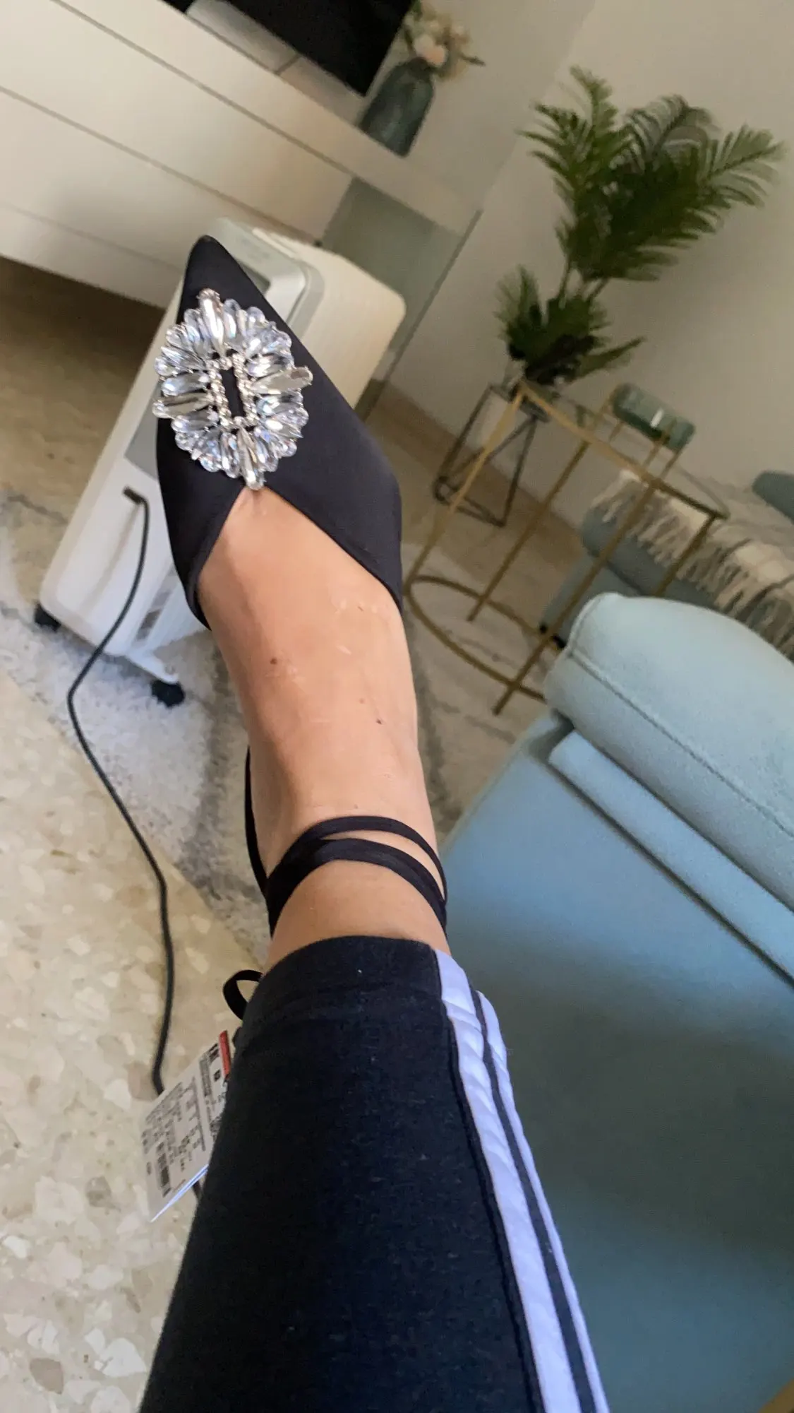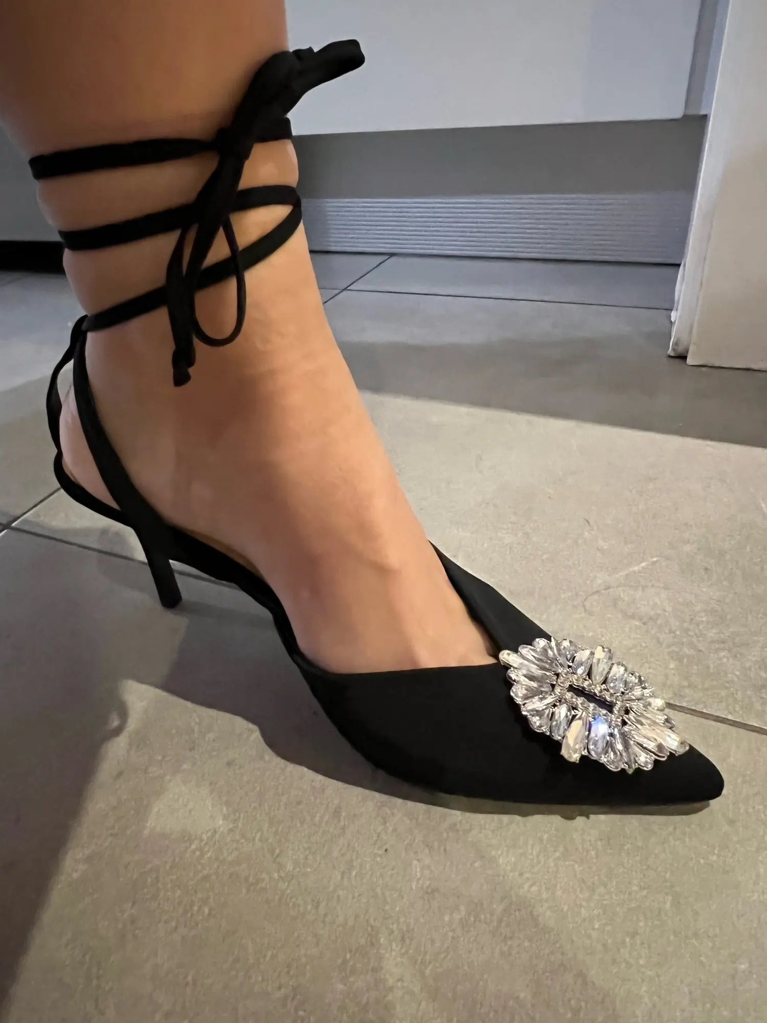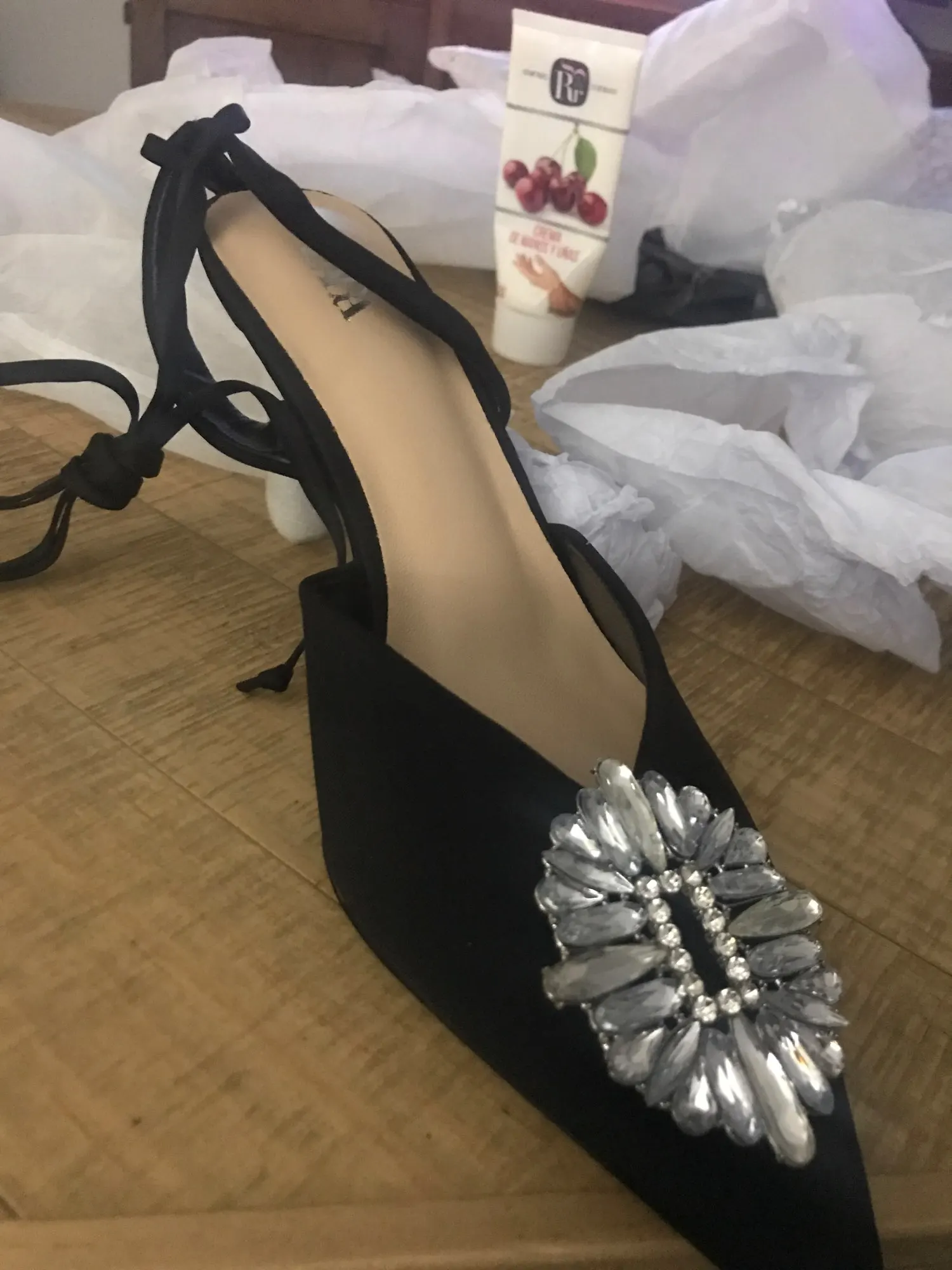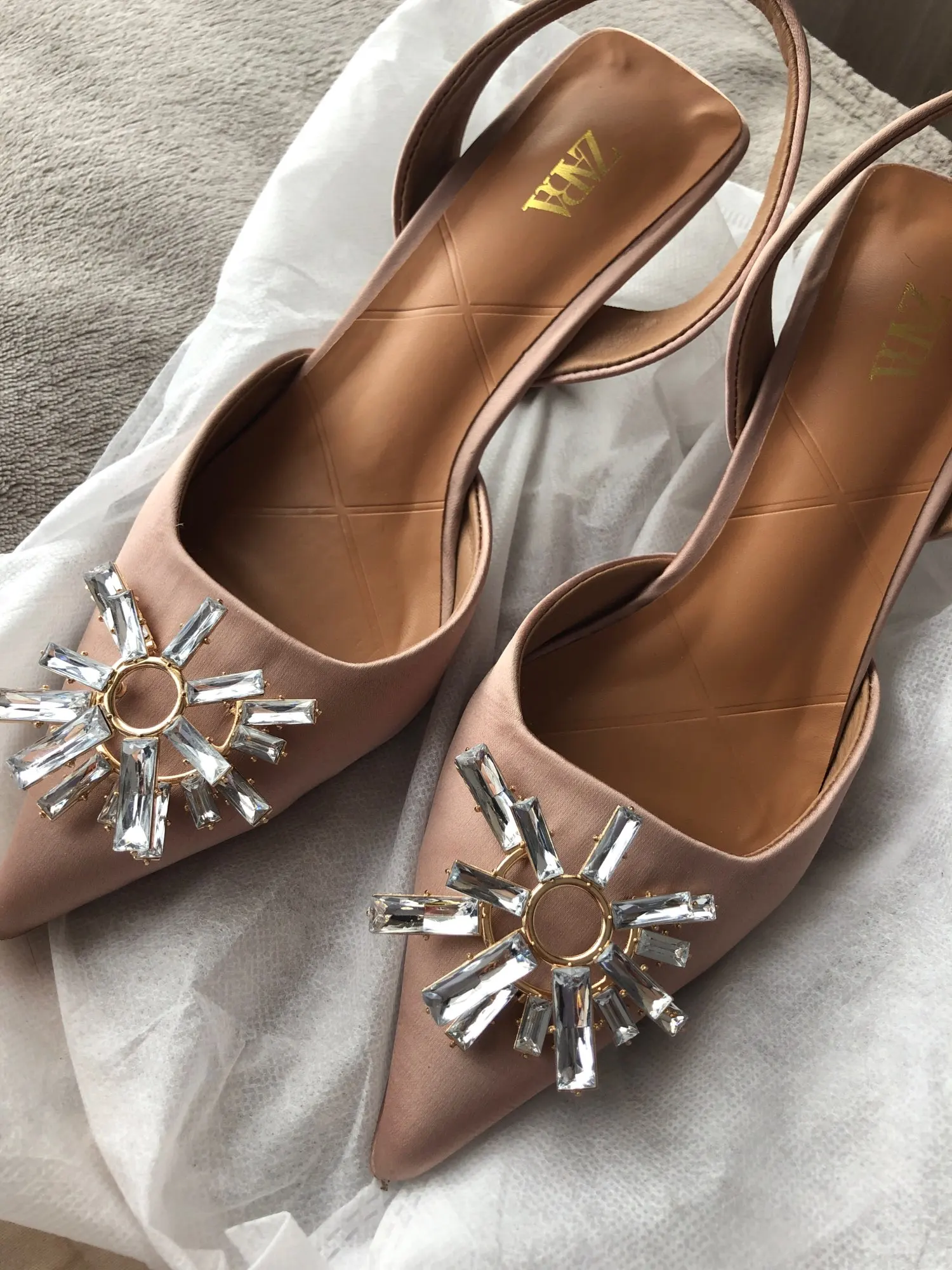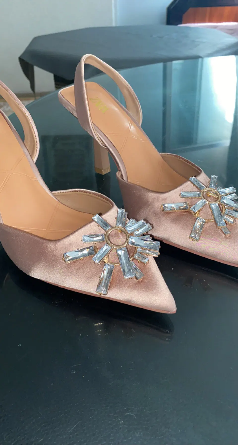 Туфли афигенные, все камни на месте, размер подошёл на мой 37,5-38 среднюю ногу. Просила поменять на 39, но продавец не поменял и хорошо, были бы большие, а так прям четко по пятке сидят. Пришли где-то недели 3 в общем