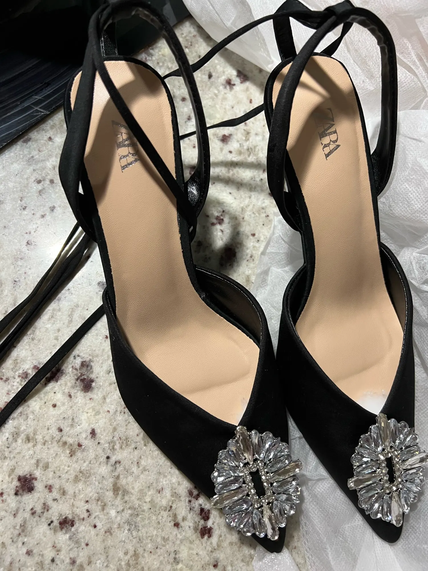 Просто идеальные ! Праздничные , нарядные ! Колодка и каблук очень удобные. У меня 38рр но стопа широкая. Я взяла 39 и не прогадала. Зара нервно курит! Спасибо! Супер товар !!!!
