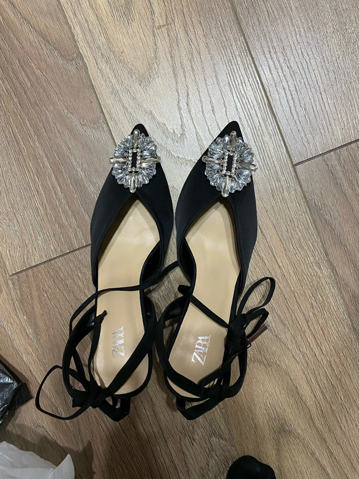 На широкую ногу и стопу 25,5 размер 41 подошёл идеально. Кое где конечно есть небольшие нюансы ( на стельке не очень ровно приклеено) , но при носке это не заметно. Также на стельке и на подошве есть логотипы Зары . Очень красиво смотрится на ноге , на солнце камни очень красиво блестят