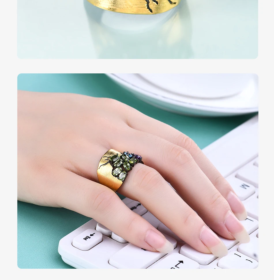 GEM'S BEAUTY 14K кольца из стерлингового серебра с золотым наполнит...