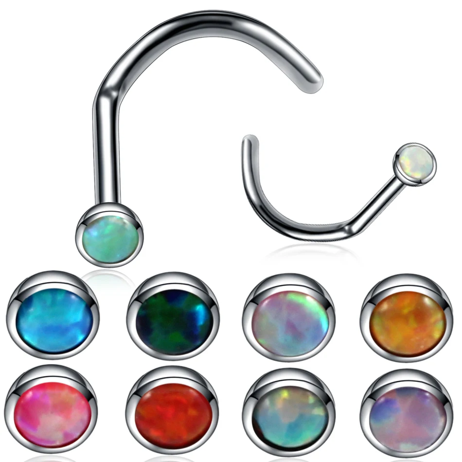 Кольцо-прокол женское из титана G23, с опалом, с винтом в носу, ювелирное изделие для пирсинга тела, Подростковая бижутерия, 1 шт.