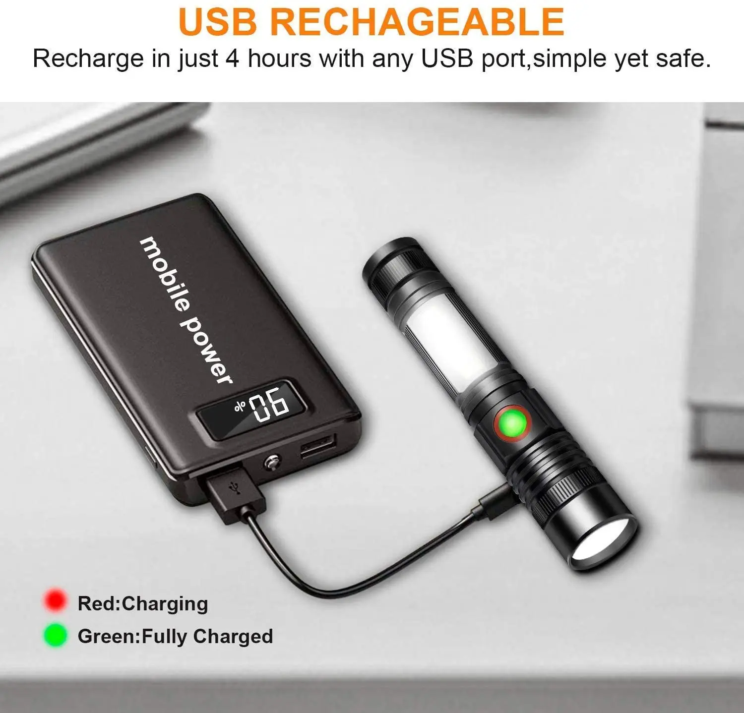 Pocketman светодиодный фонарик с зарядкой от USB, телескопический зум, фонарик с магнитом, Рабочий фонарь COB для кемпинга, походов