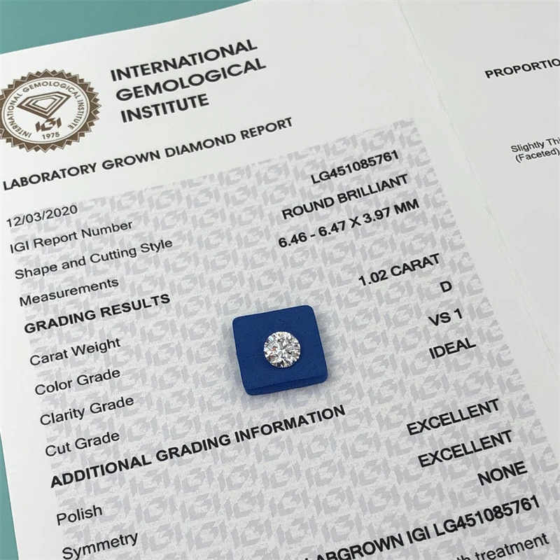 1 карат, 1,5 карата, D Цвет, VS VVS международный сертификат, лабораторный Выращенный алмаз HPHT