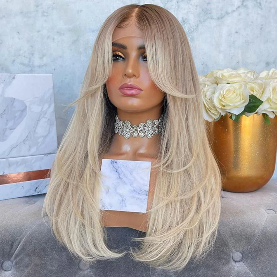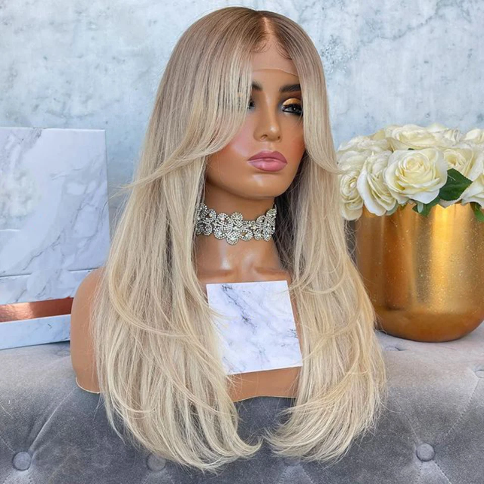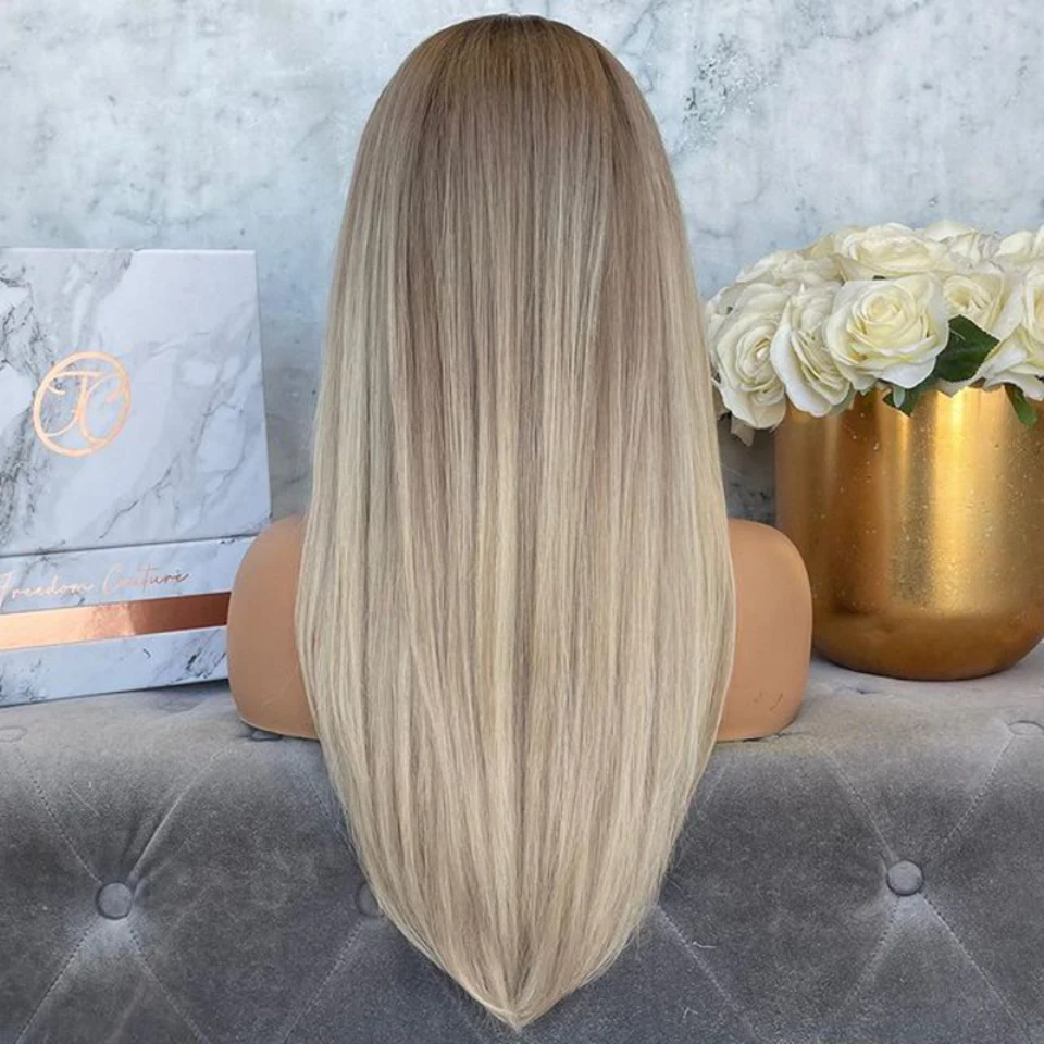 Синтетический парик блонд с эффектом деграде, 613, для чернокожих женщин, натуральные волнистые волосы средней длины, термостойкие волосы, прямая шнуровка, парики