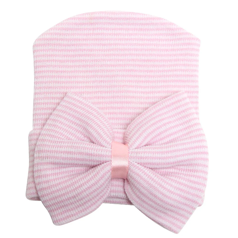 Шапка-тюрбан для новорожденных, мягкая теплая в полоску, с бантом, ...