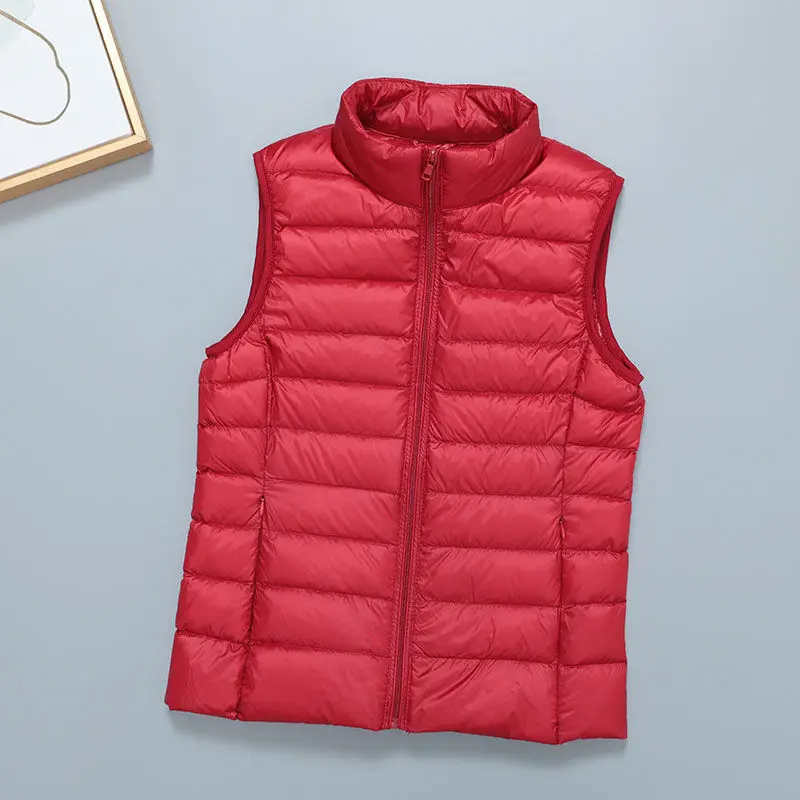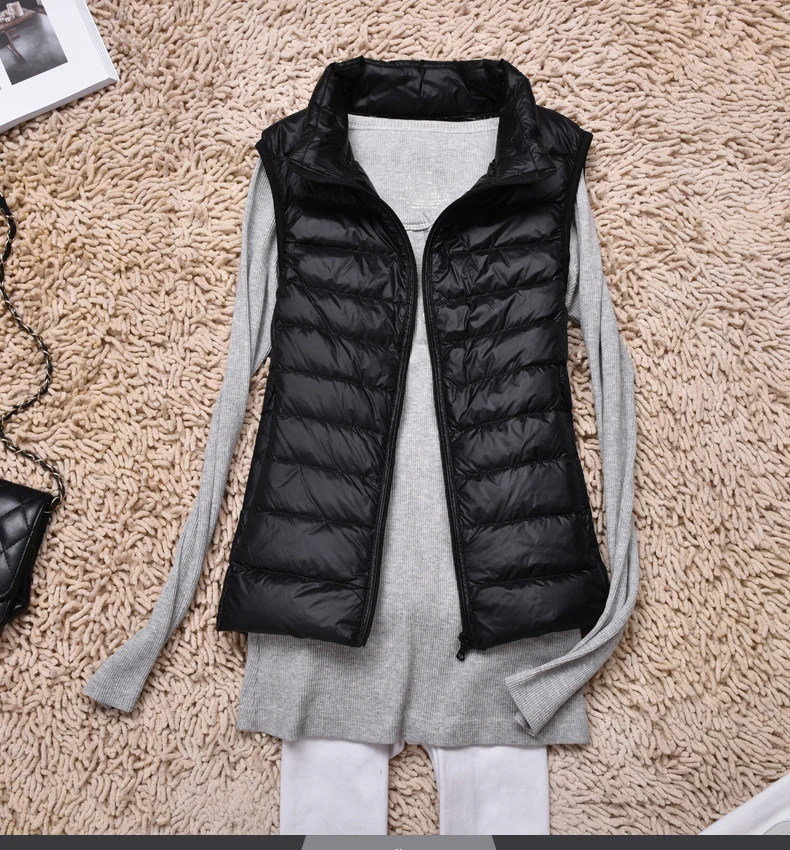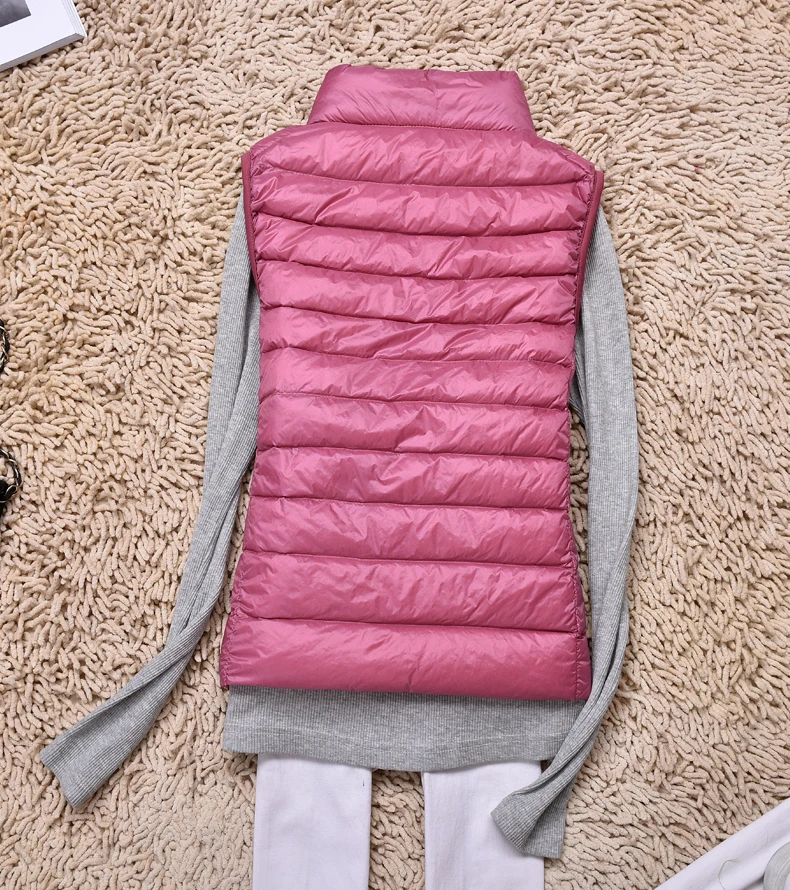 Новинка, повседневный женский жилет на белом утином пуху, ультралегкий жилет, куртка, зимнее невесомое пальто без рукавов с воротником-стойкой для девушек, портативное пальто