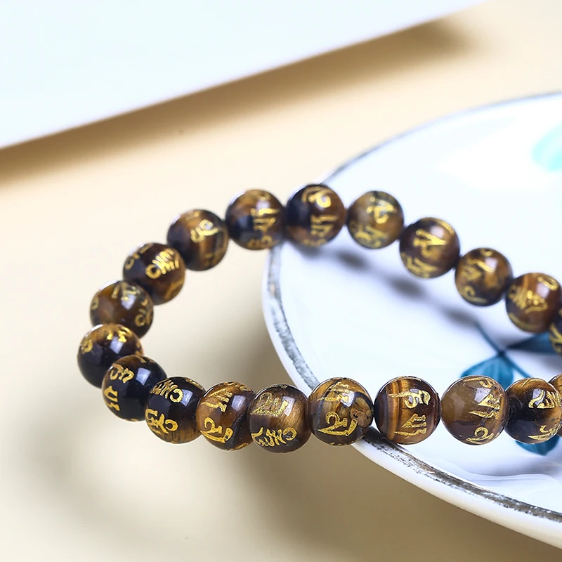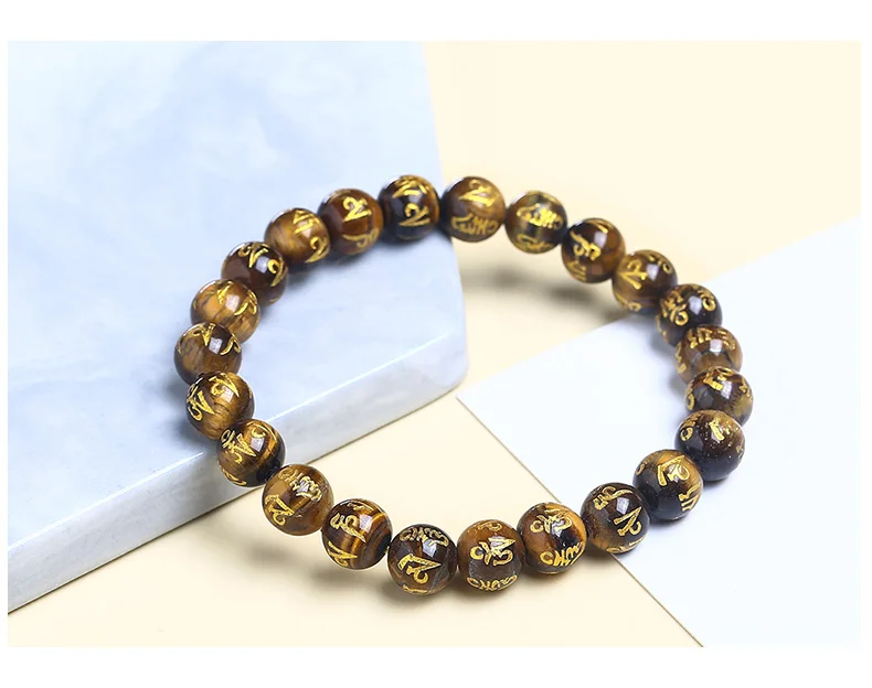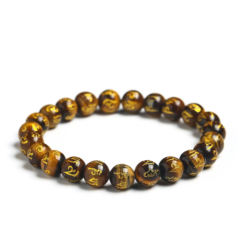 Материал: натуральный камень тигровый глаз с буддистскими словами браслет