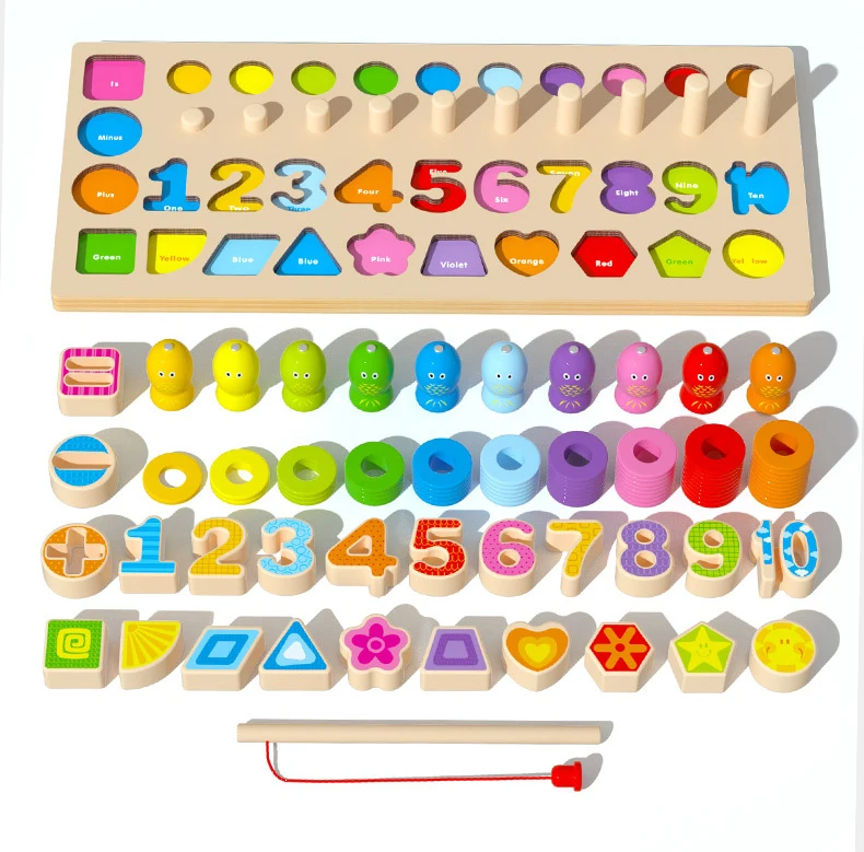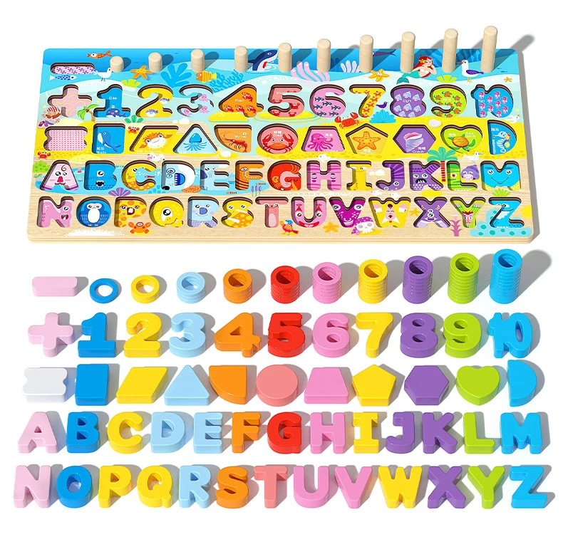 Новые детские игрушки Монтессори, деревянная геометрическая форма, цветной цифровой познавательный пазл, математические подарки для детей
