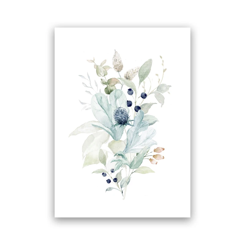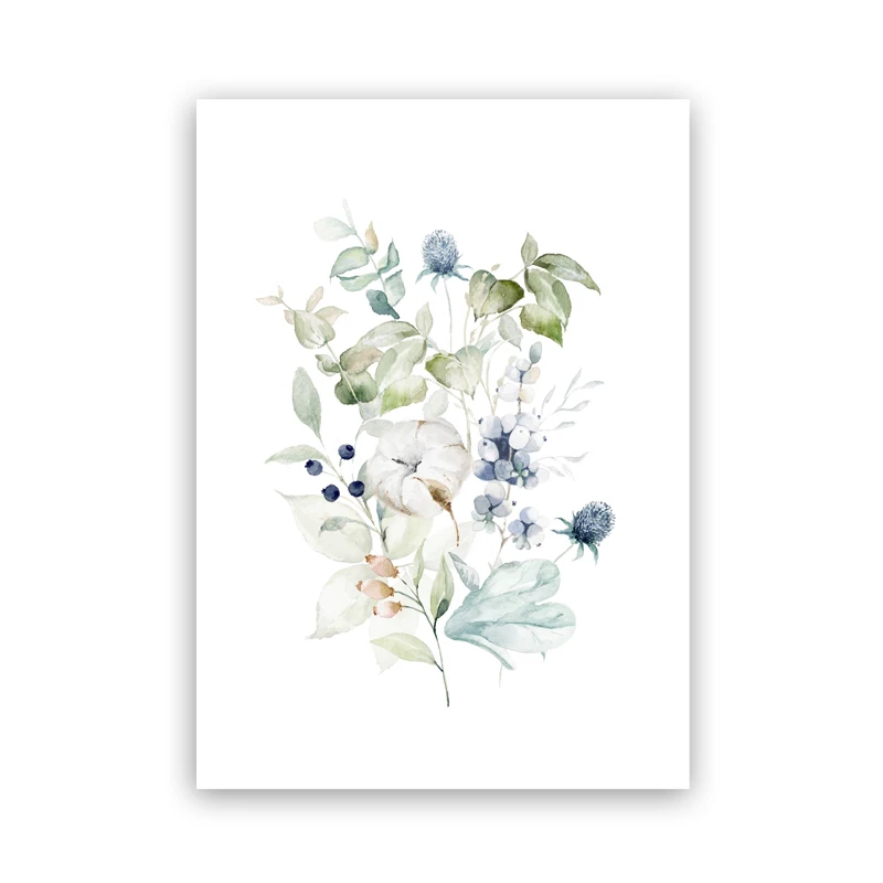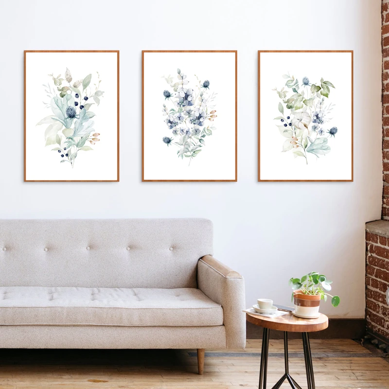 Акварельная картина с голубыми цветами, холст с принтом, букет диких цветов, плакат с цветами, украшение для гостиной, картина на стену