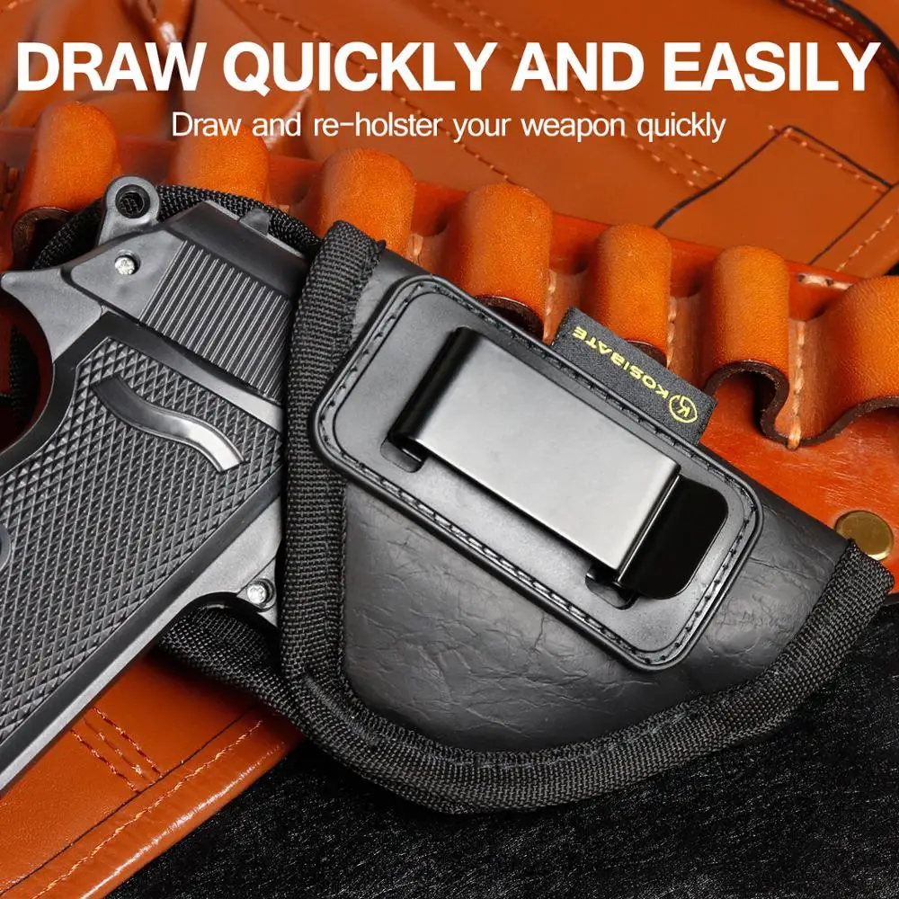 【Хорошо сделано 】 этот IWB пистолет кобура изготовлен из ультра-светильник из искусственной кожи, прочный и дышащий. Подкладка позволяет носить с собой удобно и ощущается «еле заметным».