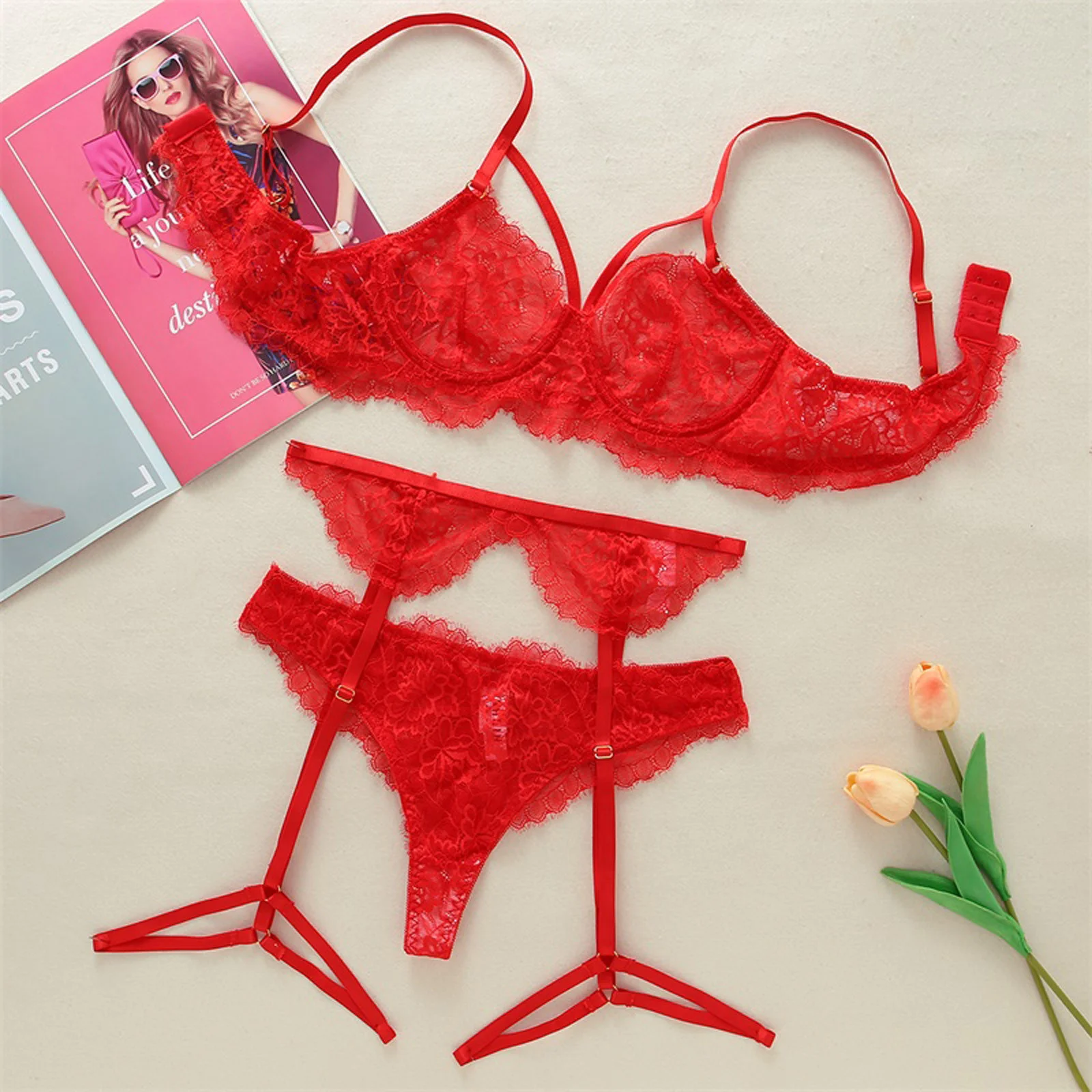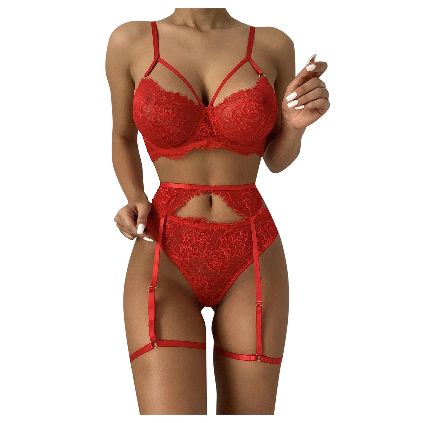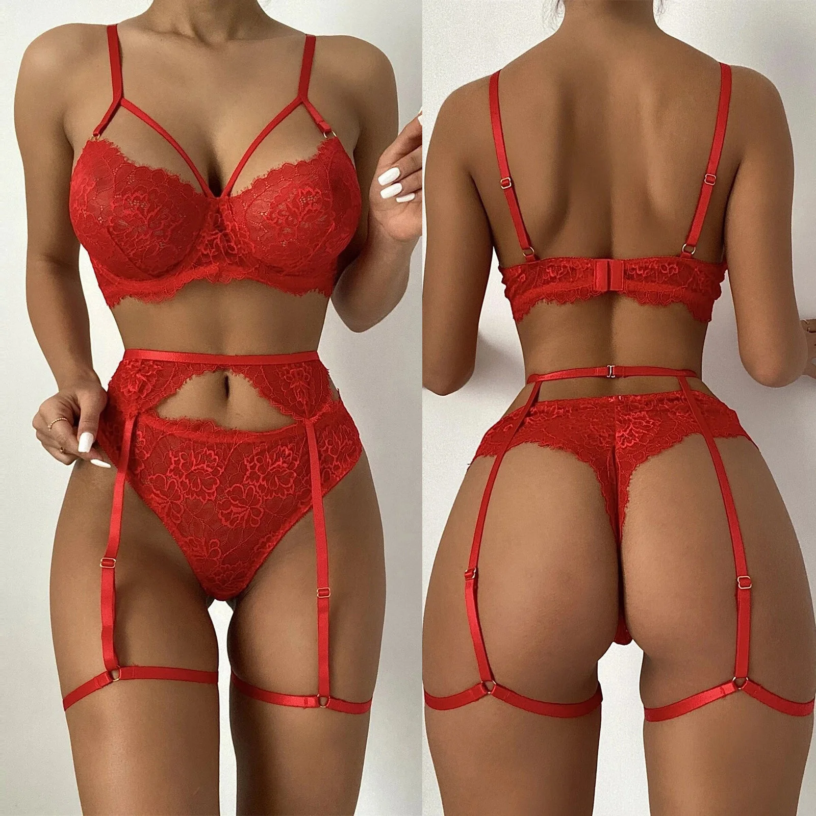 Красный кружевной сексуальный бюстгальтер, стринги, подвязки, комплект нижнего белья, женское нижнее белье, кружевной бюстгальтер с вырезами, эротическое нижнее белье, сексуальный комплект, чувственное женское белье