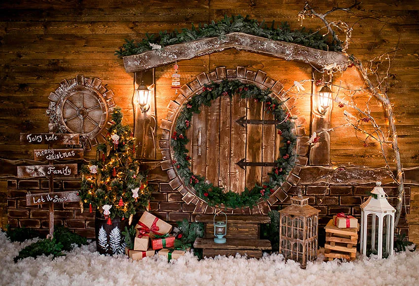 Рождественский фон Avezano для фотосъемки Зимняя сказка деревянный дом Блестящий светильник Дети Портрет фон Фотофон