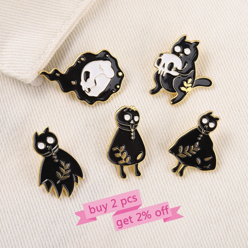 Брошь с эмалью в виде кошки-призрака, черного цвета, кошки, скелета, значки на лацкан, для сумки, в готическом стиле, ювелирное изделие, подарок для друзей