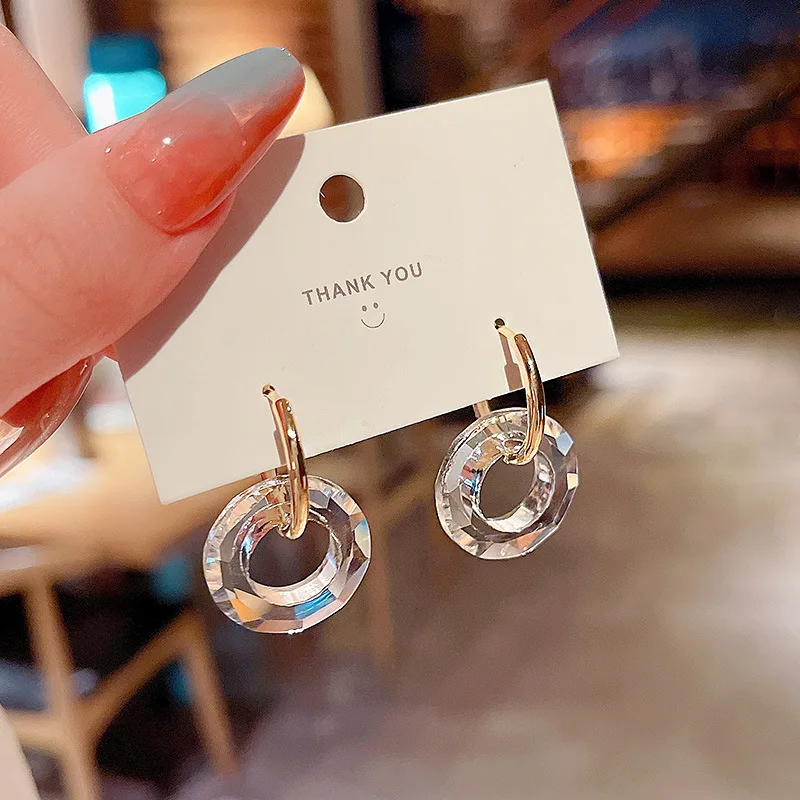 LOVOACC корейские милые прозрачные цветные длинные геометрические серьги-подвески с кристаллом AB цветные круглые ювелирные изделия