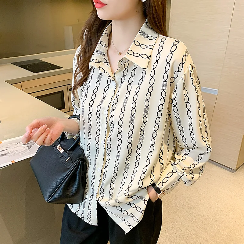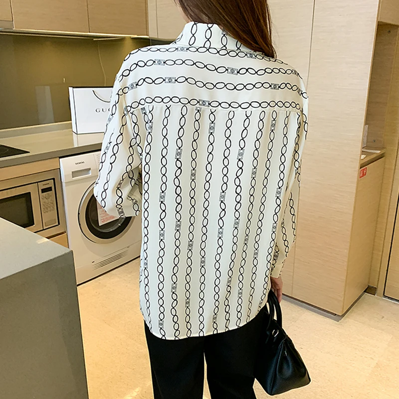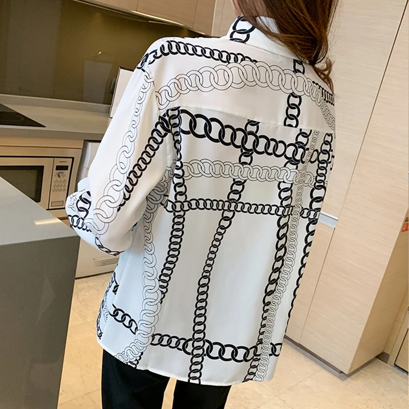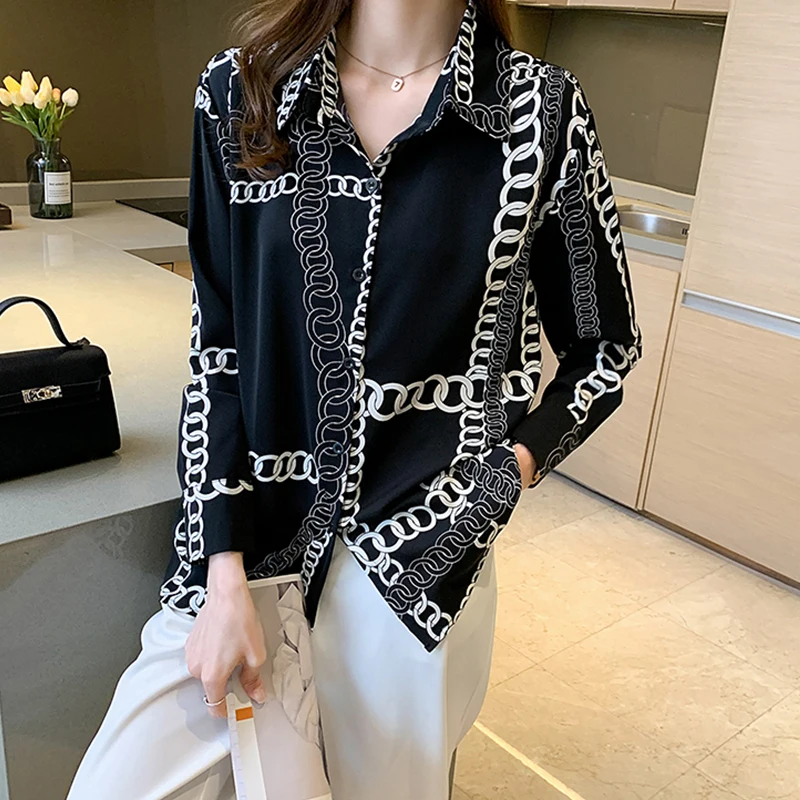 Модные женские рубашки с принтом цепей, женские блузки, весна-осень...